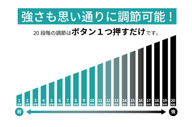 刺激強度の段階を細かく20レベルで設計しております。