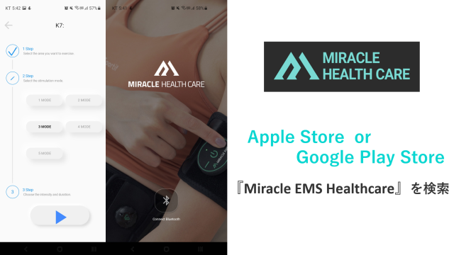 専用アプリの『Miracle EMS Healthcare』に連動して使い、