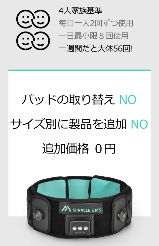 ミラクルEMSはパッドの取替えが一切必要ないです。