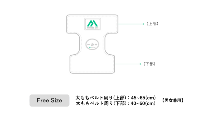 A:腹部ベルトと太ももベルトは男女兼用です。二の腕ベルトはM(女性用)とL(男性 用)サイズとなっております。