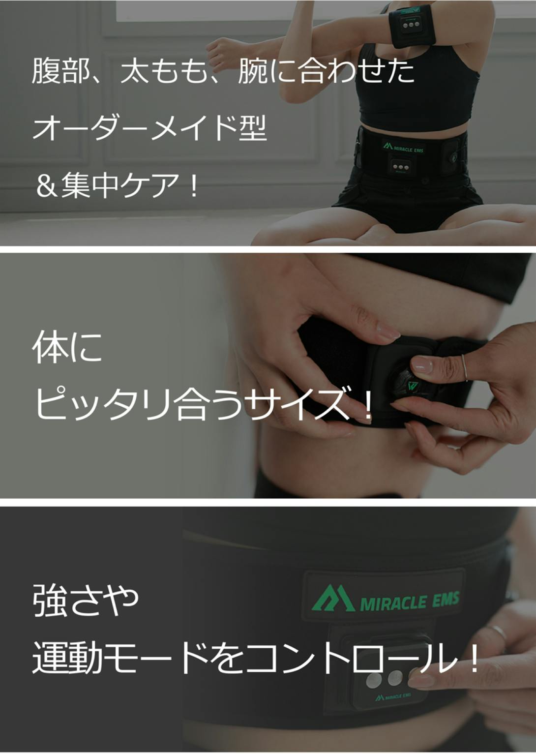 中・低周波のミラクルEMSを巻くだけで運動効果が得られます。