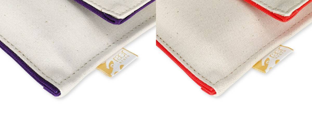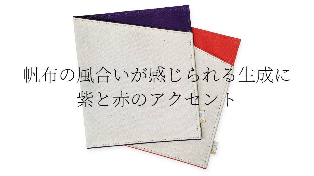 帆布の風合いを感じていただくために、あえて生成を表面に使用しました。生成(きなり)は、本来は色の名前ではなく、「綿や麻など農作物の天然素材のありのままのこと 」で、漂白や染色など、何も加えていない状態のものを指します。生成がもつ自然な風合いをお楽しみください。