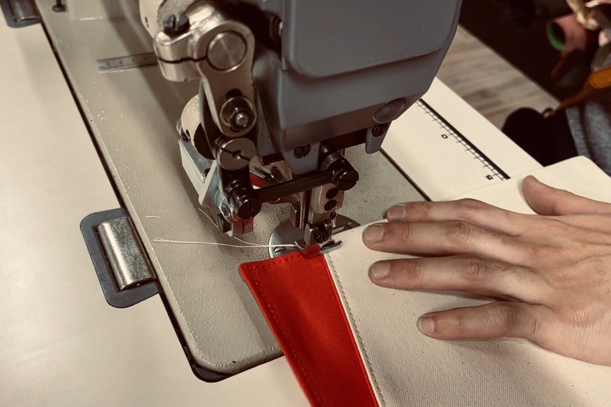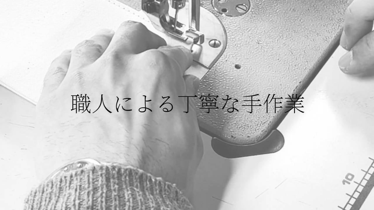 良質な鞄や革製品で有名な豊岡にある鞄工房の職人が作ります。帆布特有の硬い生地を縫製するために、鞄を作ることで培われた高い技術を持つ職人が、一つずつ丁寧に縫製しています。