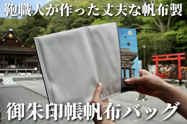 良いものをお届けしたい気持ちから国内で作られた生地を使い、国内で縫製することにこだわり、参拝のお供として長くお使いいただける「御朱印帳帆布バッグ」 を作りました。