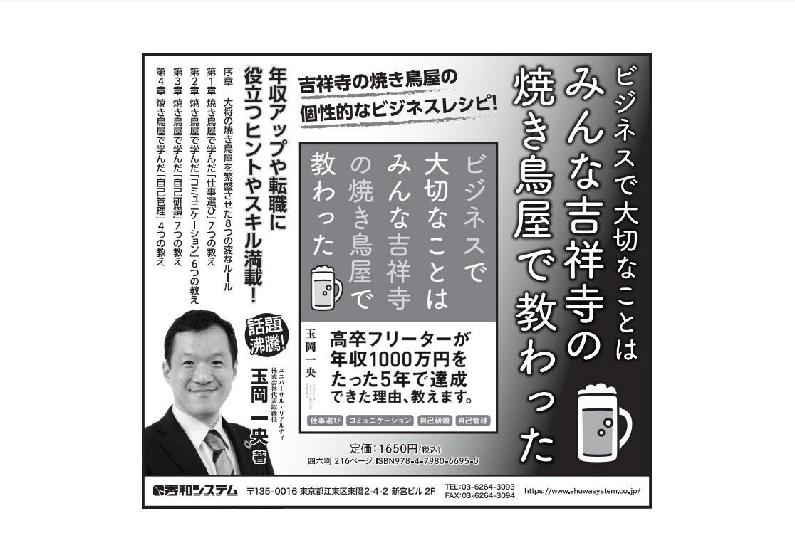 写真は4月12日(水)、日本経済新聞の全国版朝刊へ、掲載していただいた広告です。