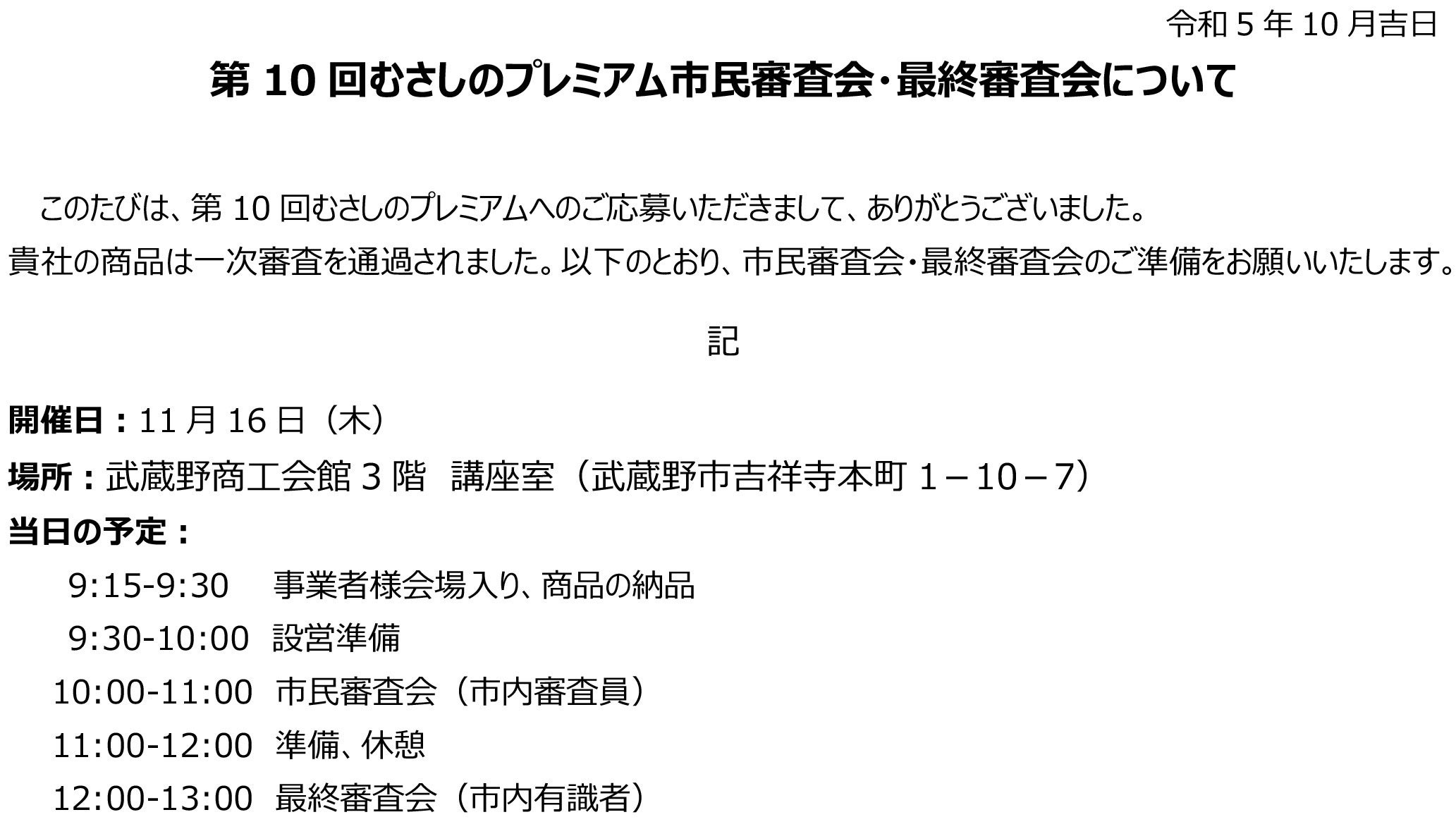 支援者各位皆さま 季節は移ろい、朝晩はすっかり秋真っ只中となってきました。元気にお過ごしでしょうか。本日は、皆さまにご支援いただきました「ビジネスで大切なことはみんな吉祥寺の焼き鳥屋で教わった」武蔵野市のお土産「むさしのプレミアム」一次審査を通過しましたので、お知らせさせて頂きます。11月16日(木)に「市民審査会」「最終審査会」を経て、審査通過ができれば、3年間の認定期間が与えられる予定です。当日のプレゼンテーションに向けて、準備を行います。よろしければ、お手伝いいただける方を、募集させていただければと思います。こちらをクリックで、お問合わせ内容に、むさしのプレミアムとご記入お願いいたします。それでは皆さま、改めて結果をご報告させていただきます。どうぞ宜しくお願いいたします。