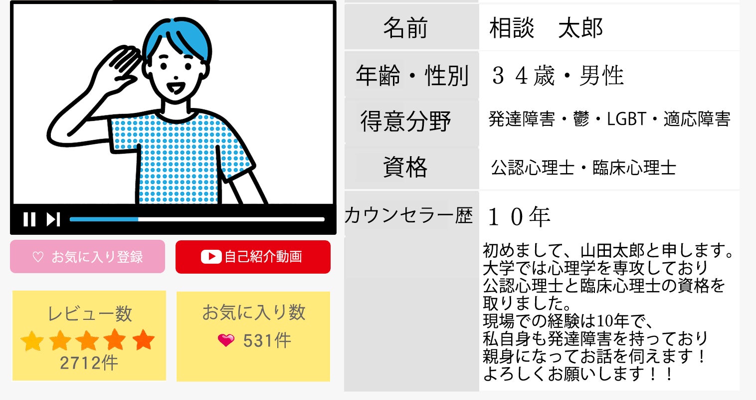 また、プロフィール欄にカウンセラーの自己紹介動画を付けることで、感覚的に相性が合う先生を見つけることが可能です。