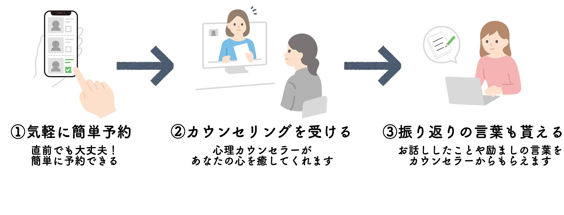 様々なカウンセリングサービスがありますが、今回のプロジェクトの強みは以下の3点です。