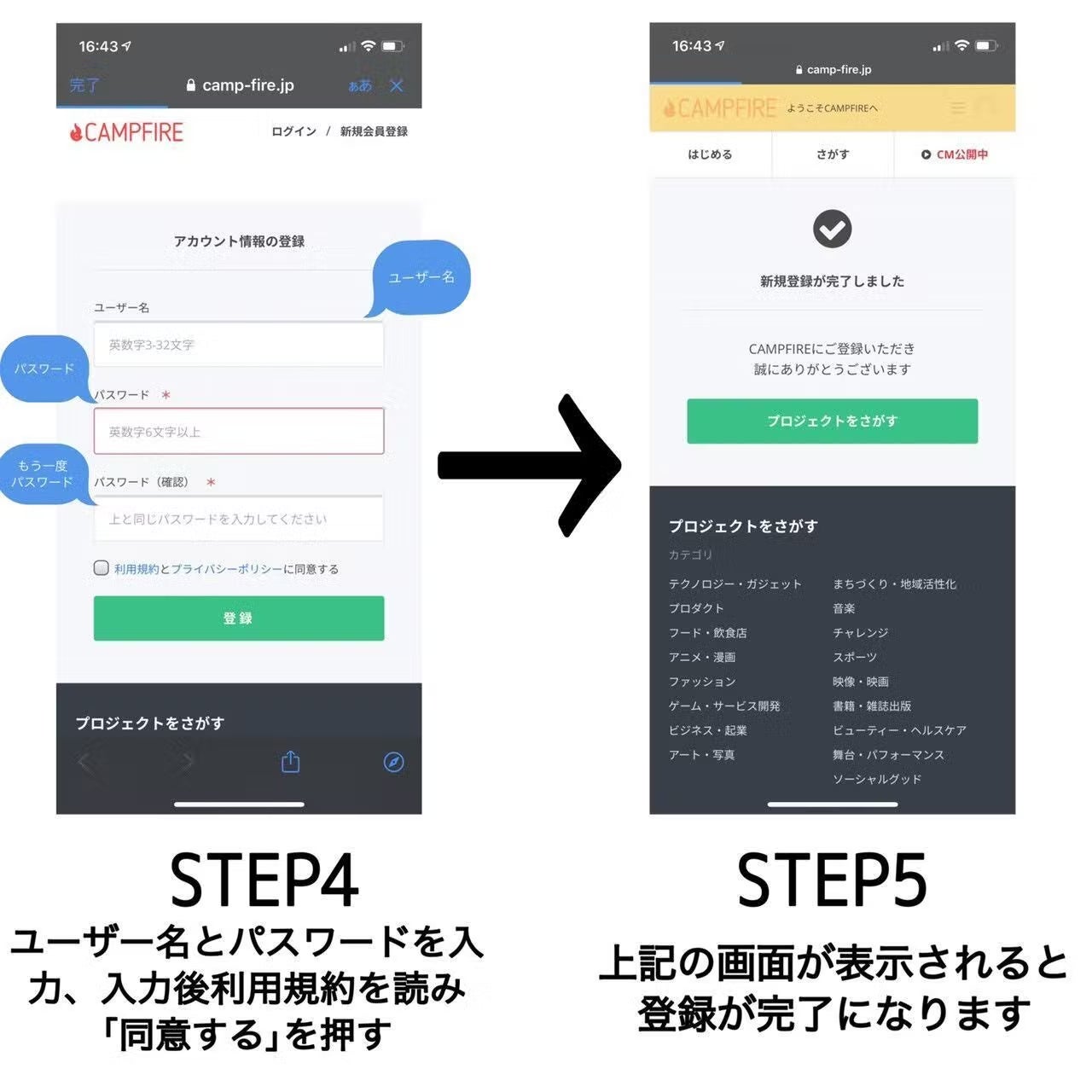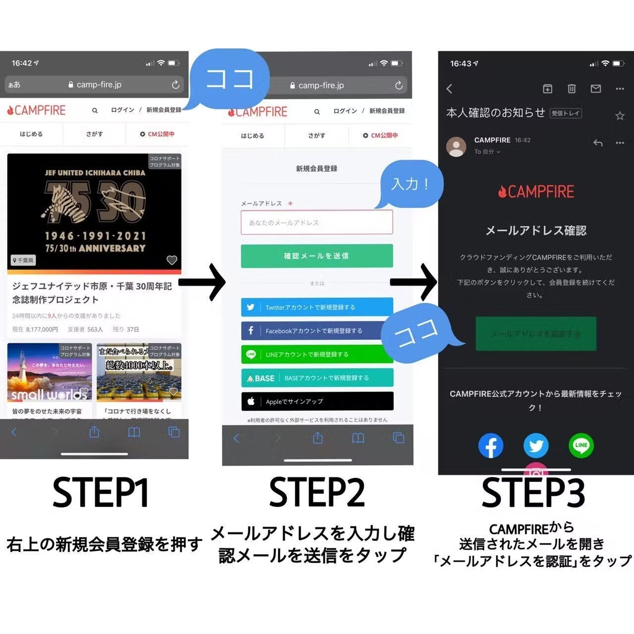 キャンプファイヤーへの登録が必要となります。登録方法はこちらから。↓