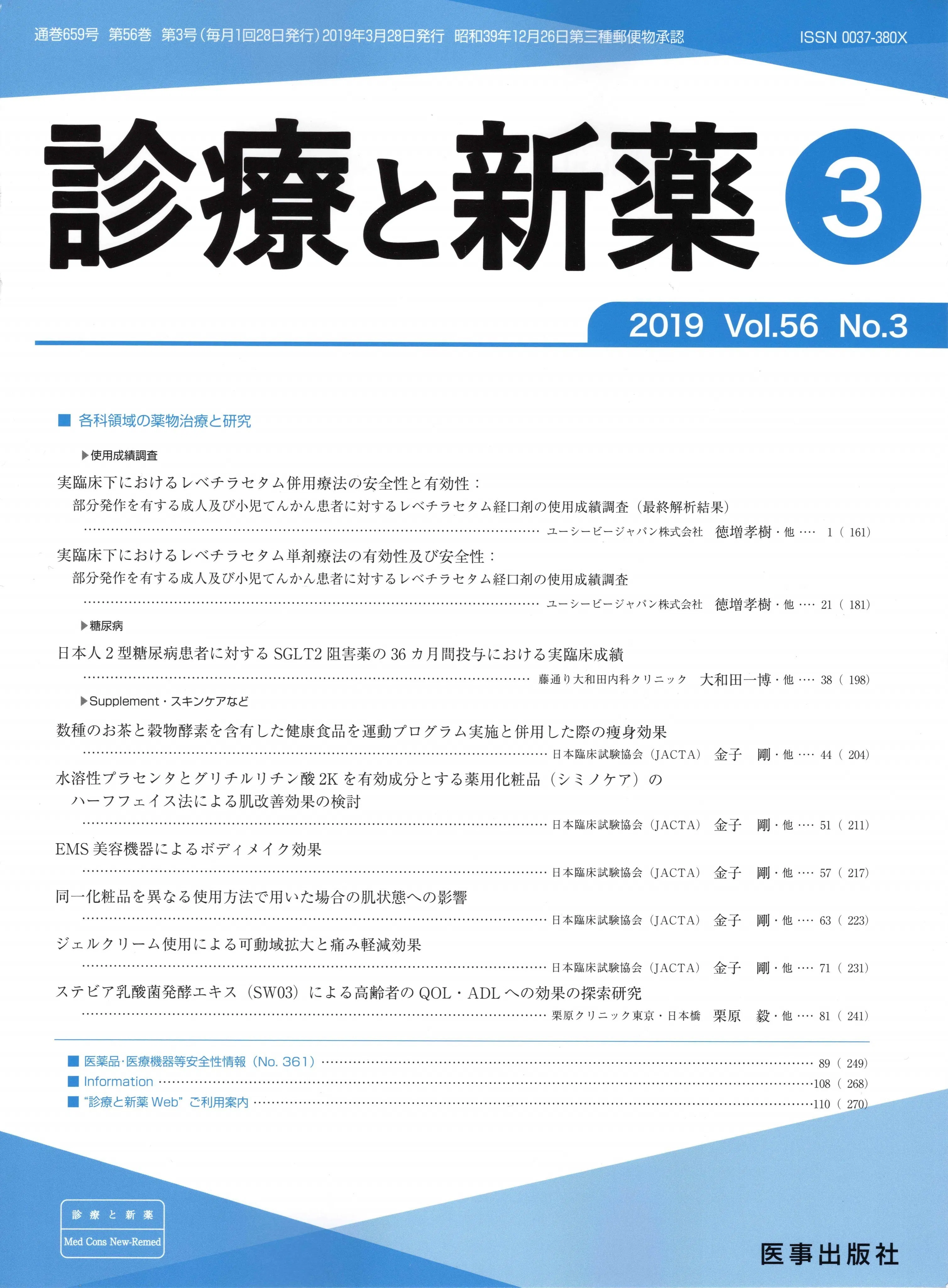 医学論文誌「診療と新薬」2019年3月Vol.56号に「ジェルクリーム使用による可動域拡大と痛みの軽減」の表題で臨床結果が掲載されています。詳細が気になる方は情報が公開されているので、検索してご覧ください。