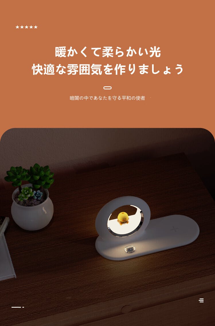 今回紹介する商品はK08です。新しいワイヤレス充電器であり、テーブルランプでもあります。小さくて軽いので、持ち運びやすいです。自宅だけでなく、旅行先や主張先でも使えます。