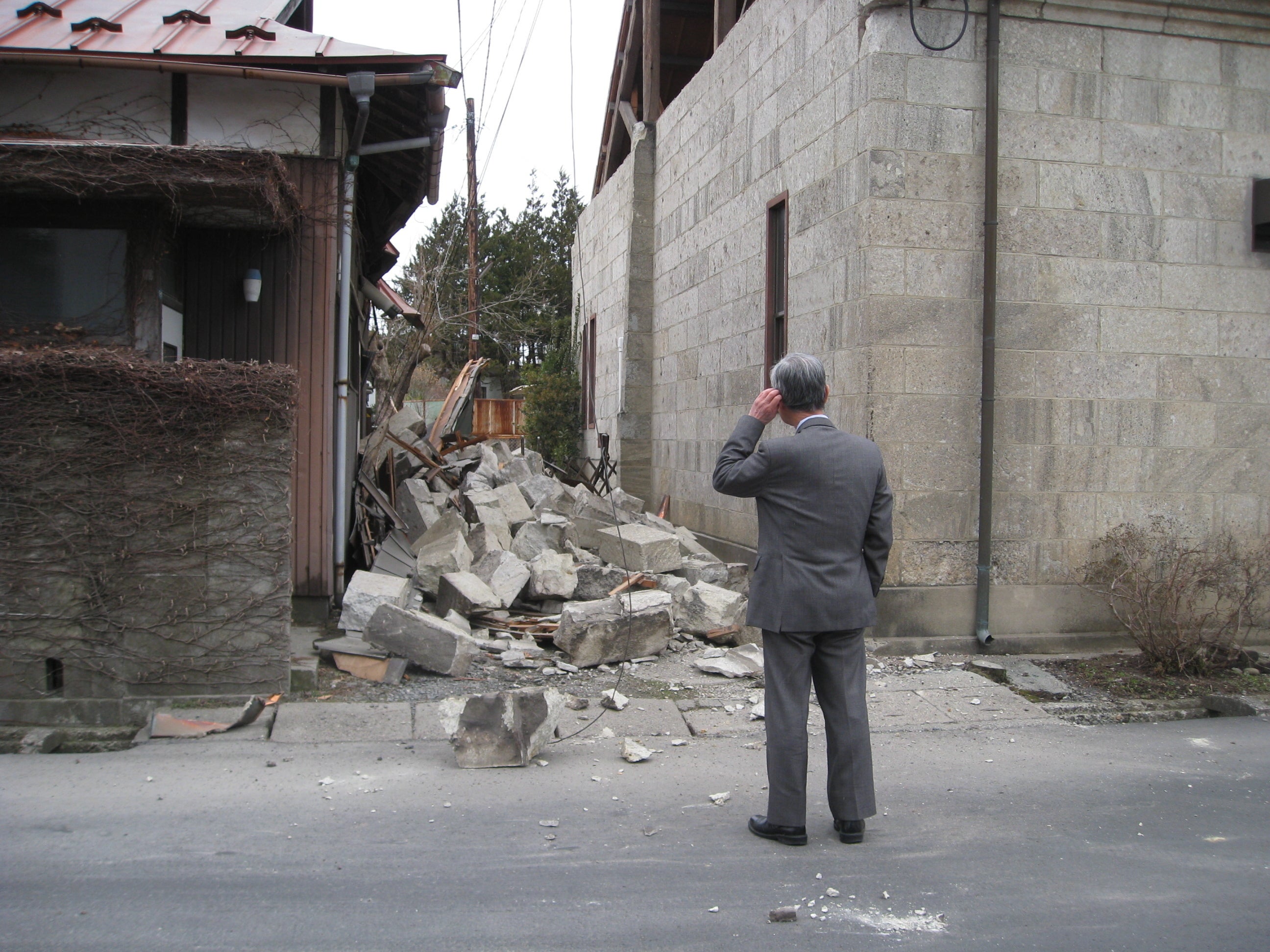 (東日本大震災で蔵の崩壊に呆然とする三代目)