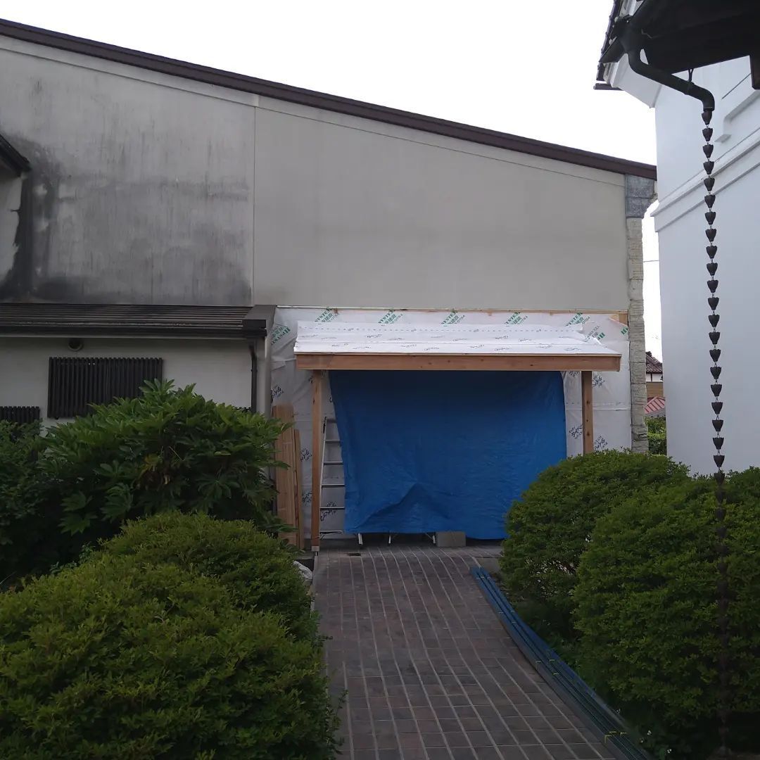 入口はなにか白いシートがはられましたね!防水シートかなぁ・・・明日以降が楽しみです。