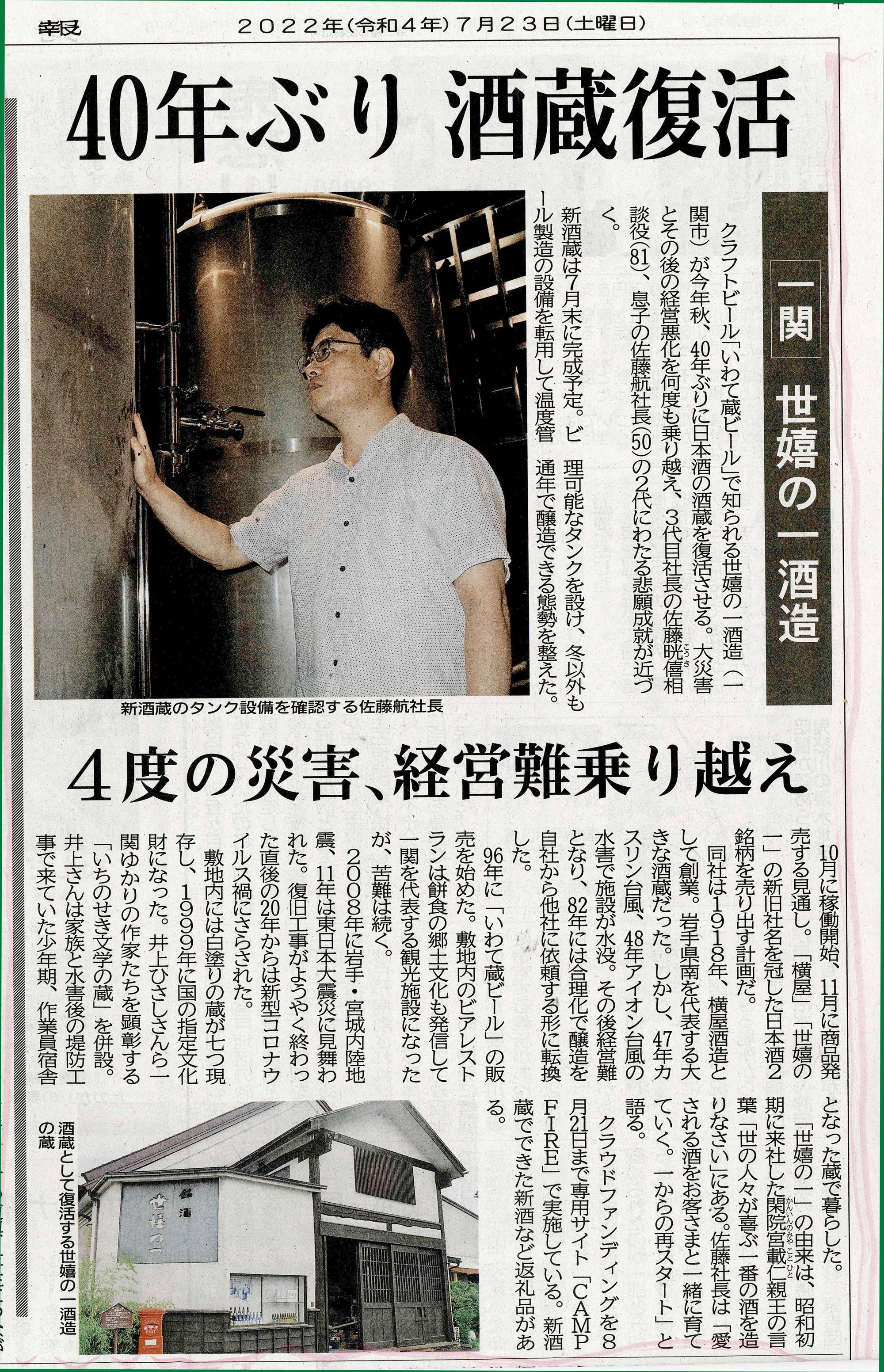 さて、今朝の朝刊で東北で読まれている河北新報で、当社の取り組みが記事になりました!