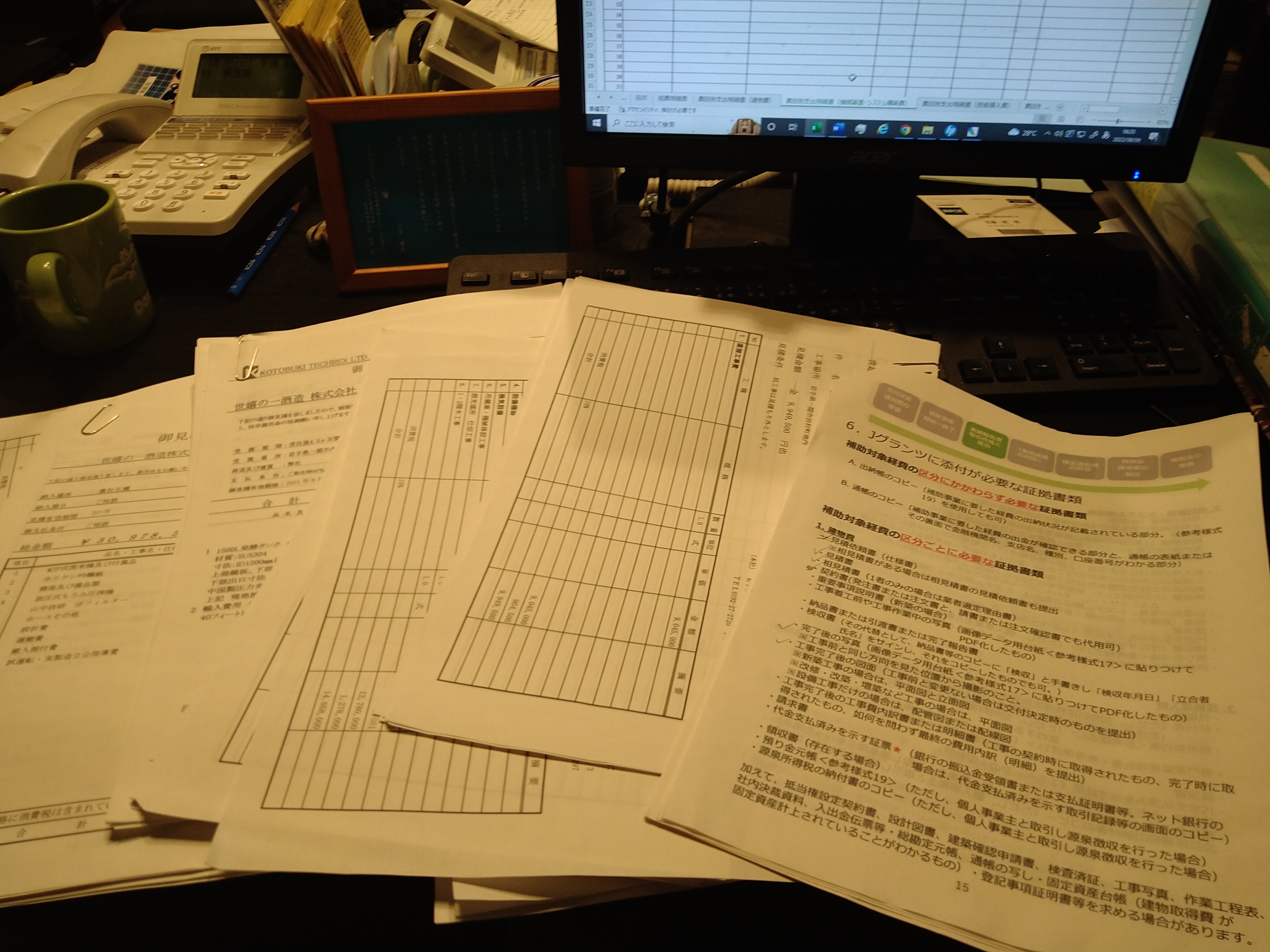 申請する際は、夢と希望でワクワクして記載して提出ですが、今記載しているのは、報告書です。こちらは現実と向き合い、工事費がいくら予定より上がったとか、相見積もり書を添付とか・・・なかなか根性がいります。