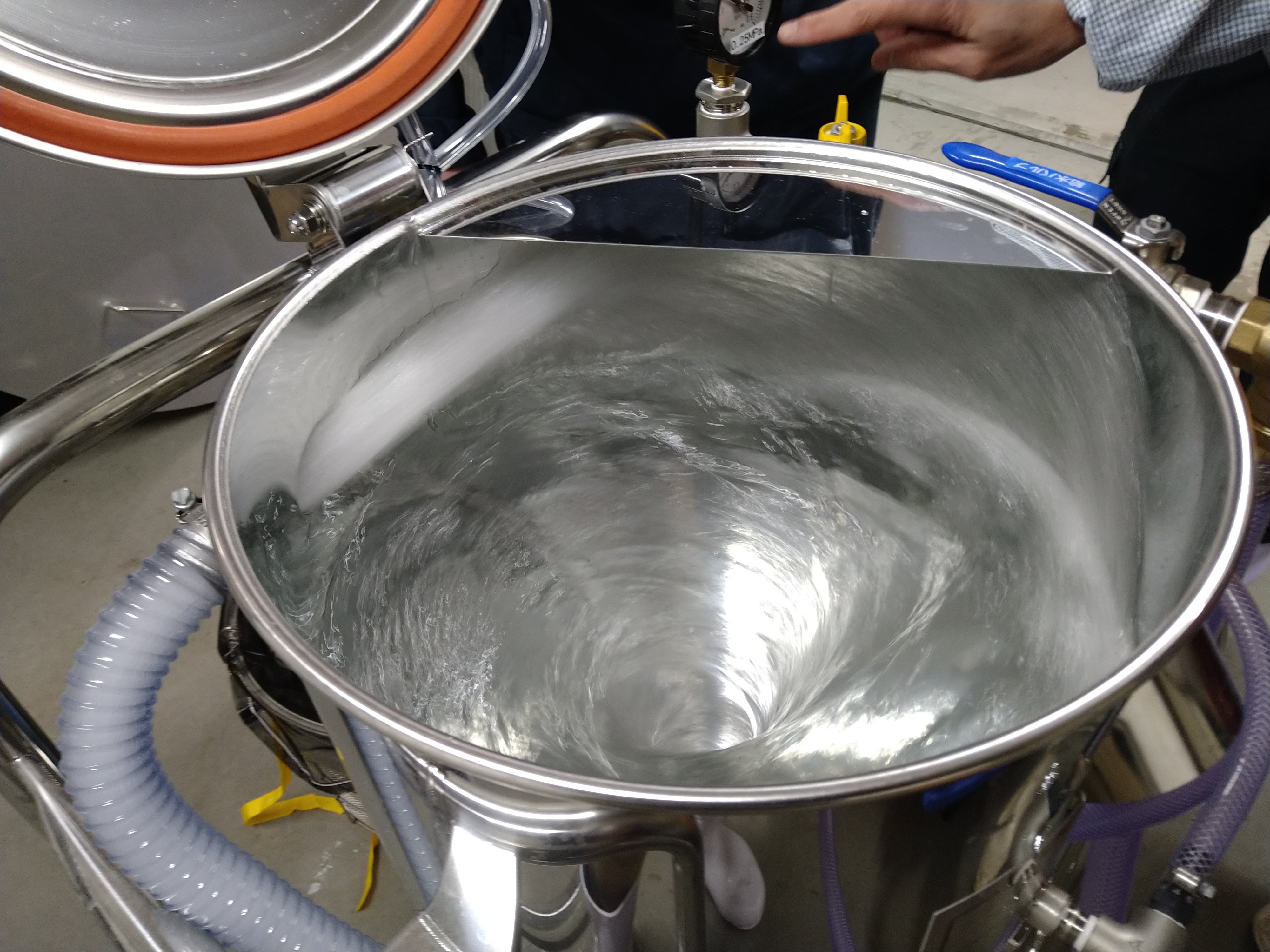 また、新しい機械の使い方もわからず、新洋技研の成田様にお越しいただき、指導を頂きながら醸造しています。杜氏の三浦さんもアドバイスに来ていただいたり、工業技術センターの佐藤先生にもご指導いただいています。本当に多くの皆様のバックアップもあり、とうとうスタートしました。感謝感激です。