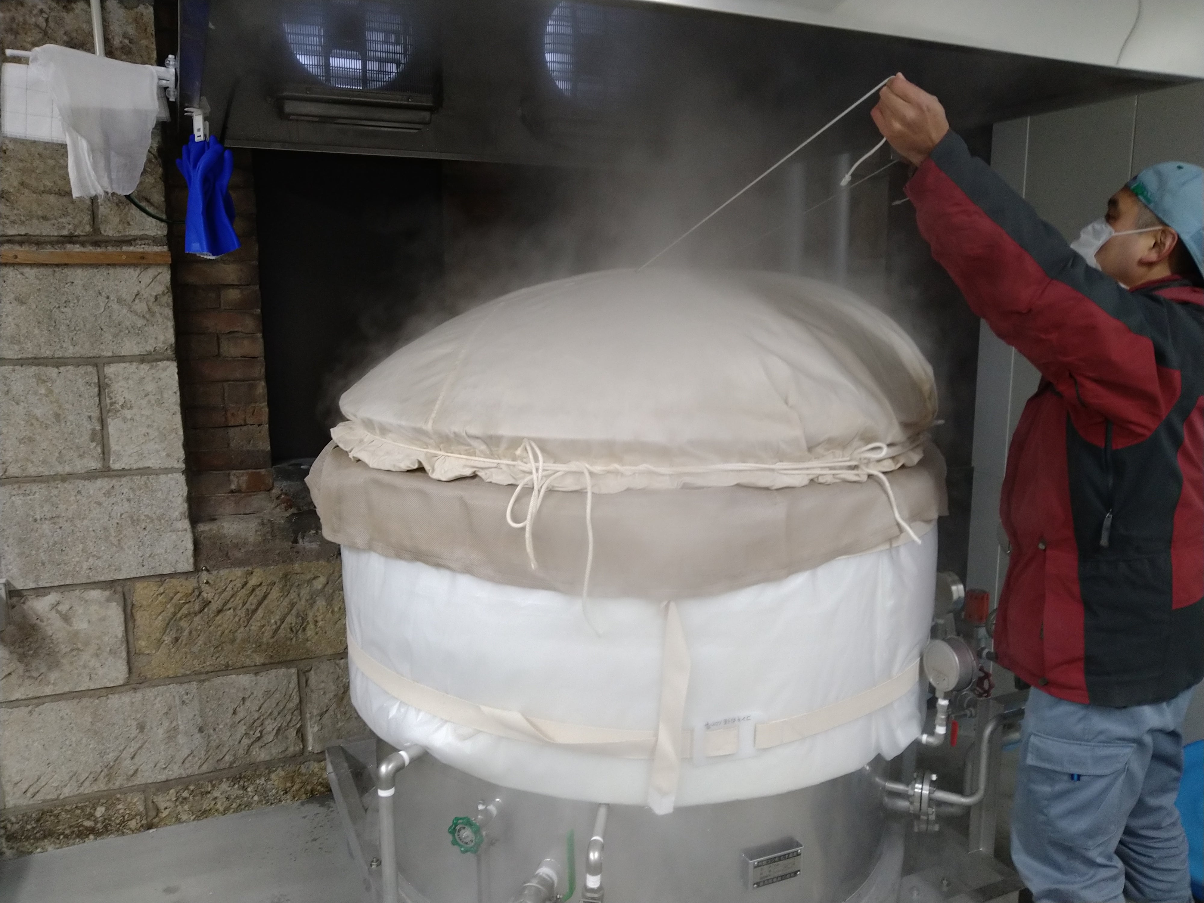 そして、1日おいて、朝、蒸米のスタート。