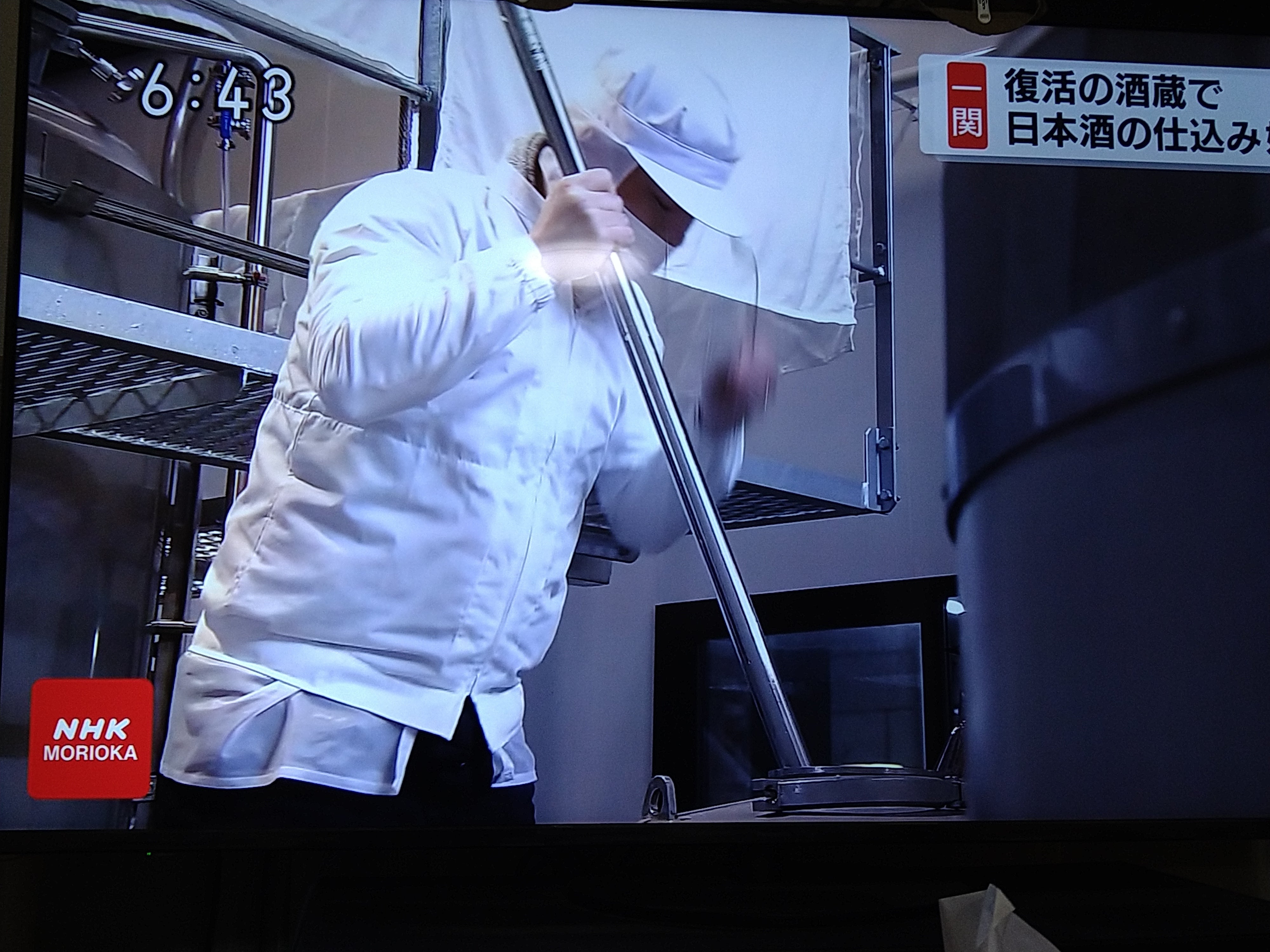 今日は朝から気持ちの良い1日です。朝からNHK盛岡の取材の方がお見えになりました。昼のニュースに掲載したいと、私たちの洗米、かい入れなどを取材していただき、ありがたいです。