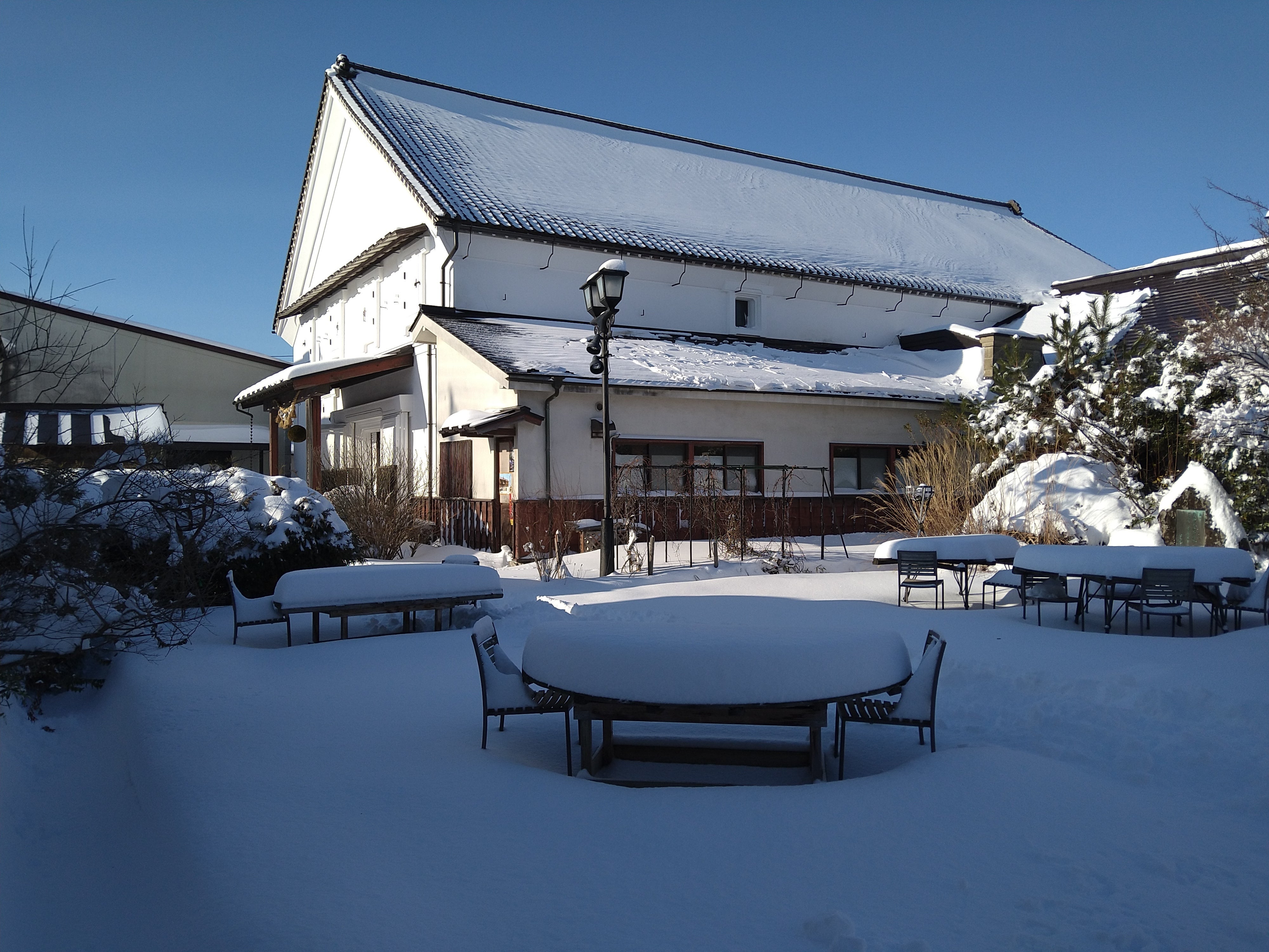 昨晩はかなり雪が降りました。朝になったらいい天気、昼には溶けそうです。
