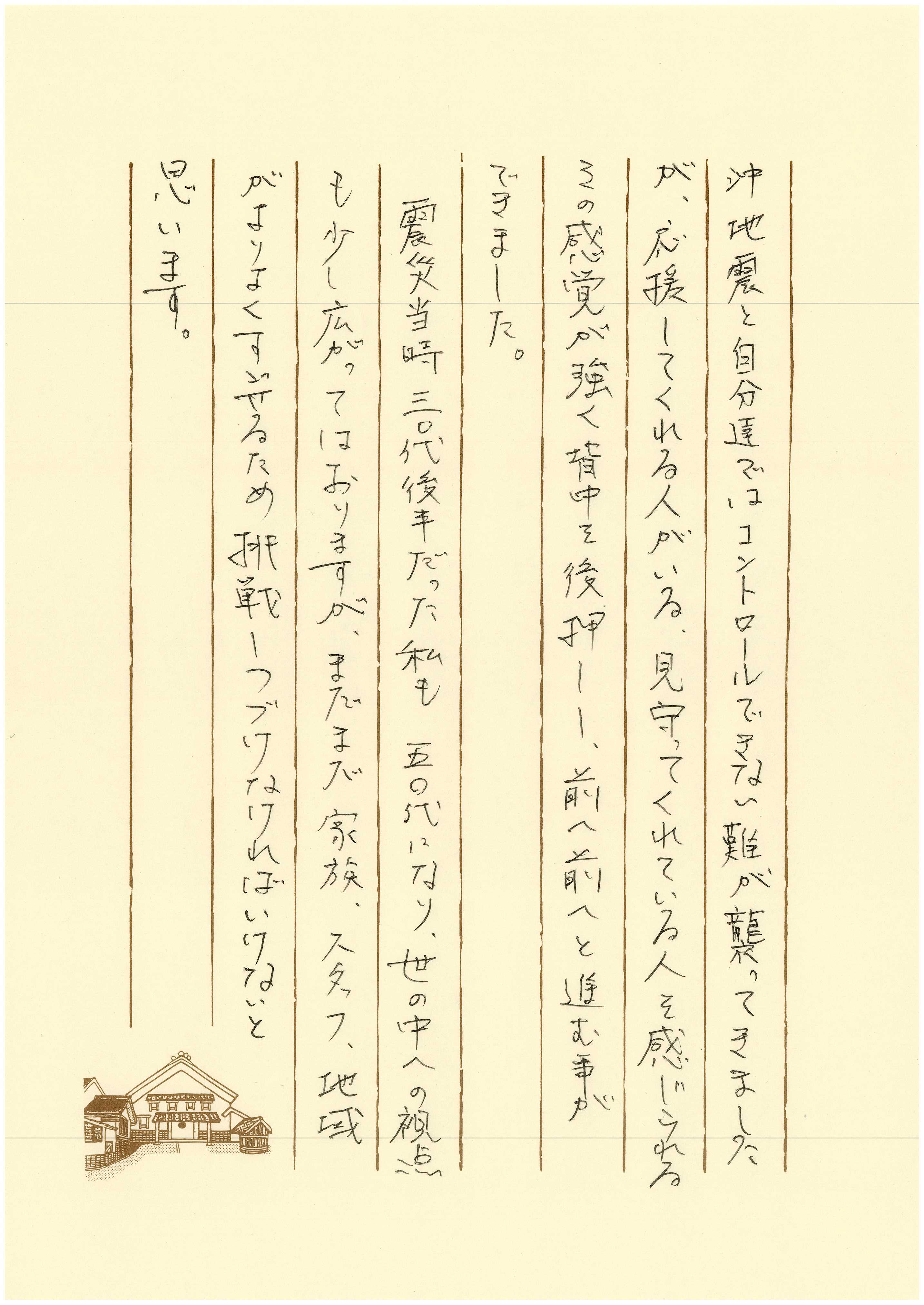 東日本震災、コロナ、福島宮城県沖地震と、自分ではコントロールできない困難が襲ってきても、いつも応援し、見守ってくださる人を感じていました。