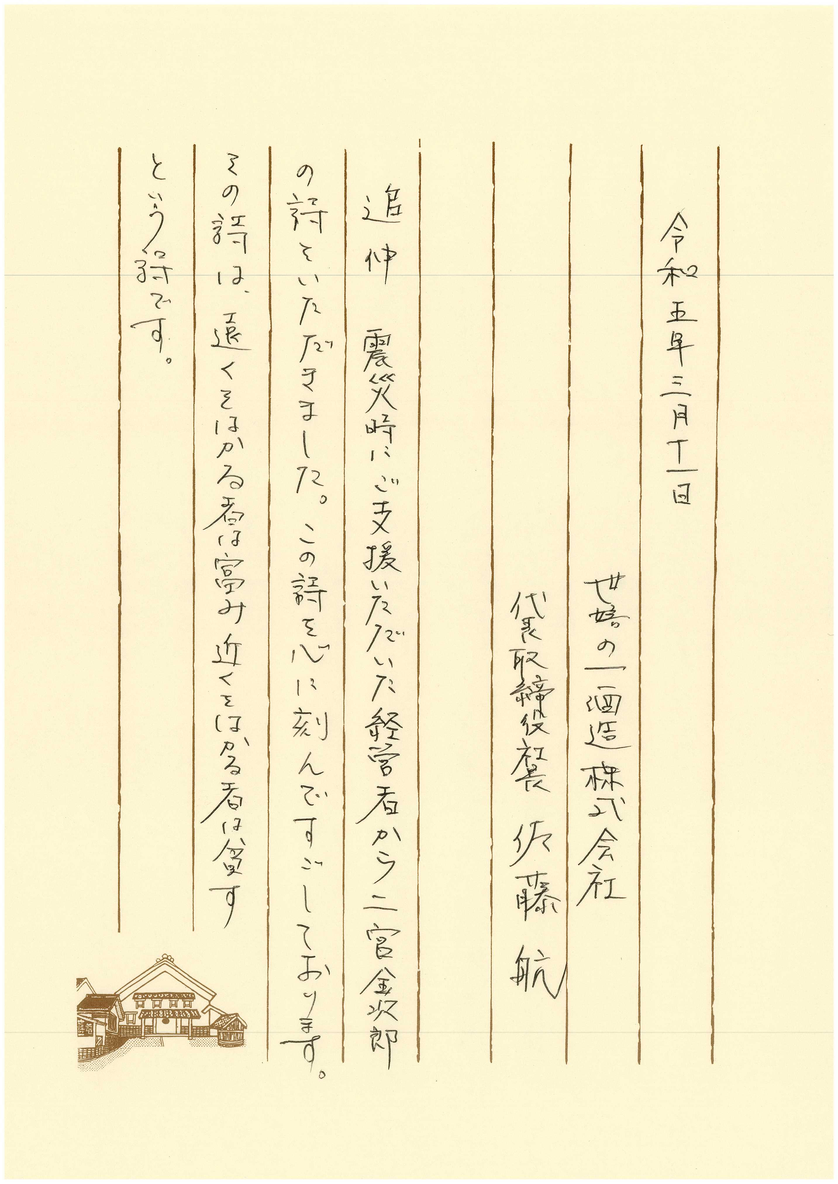 追伸:震災時にある経営者から二宮金次郎の詩をいただきました。この詩を心に刻んですごしております。
