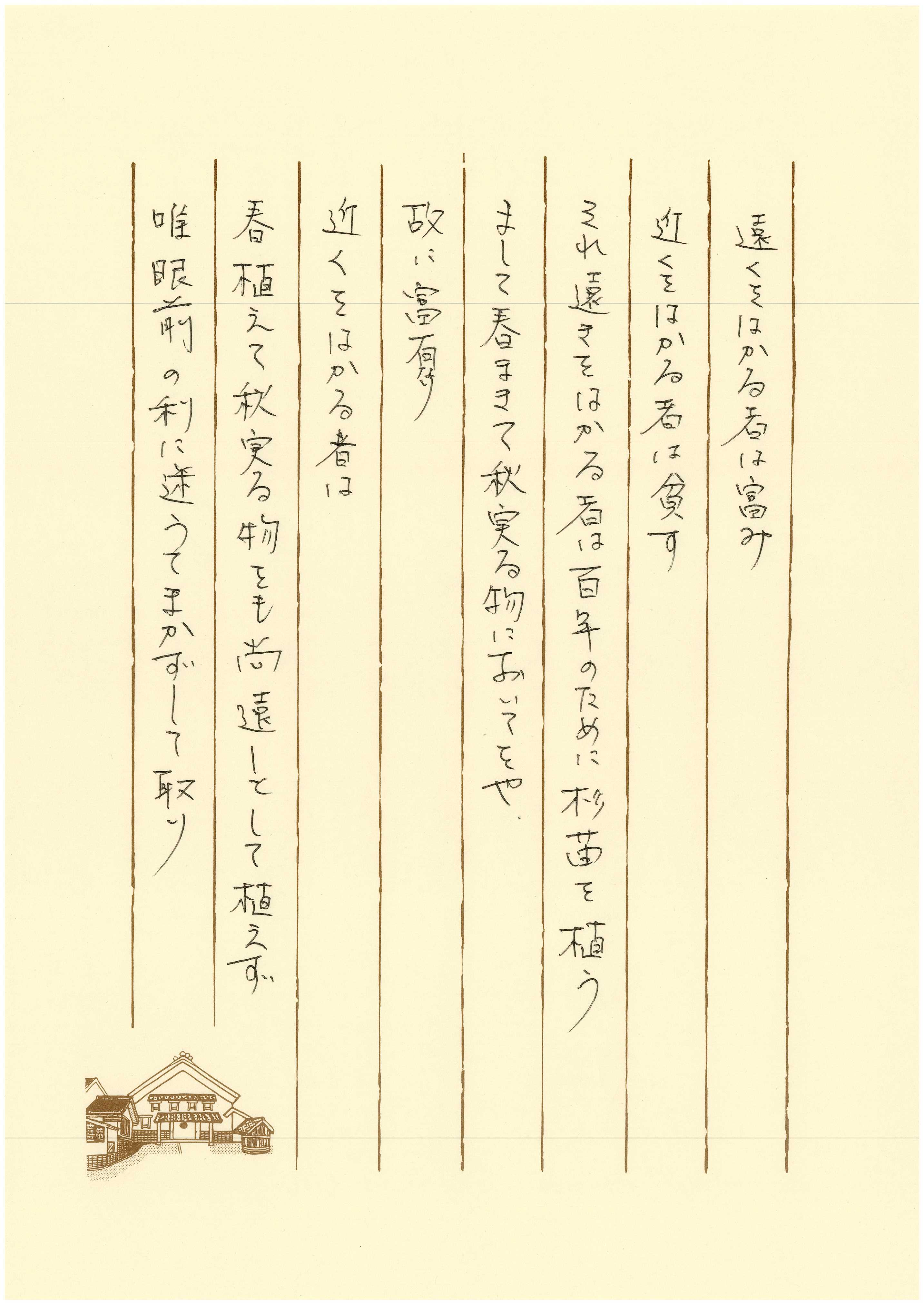 それ遠きをはかる者は百年のために杉苗を植う。