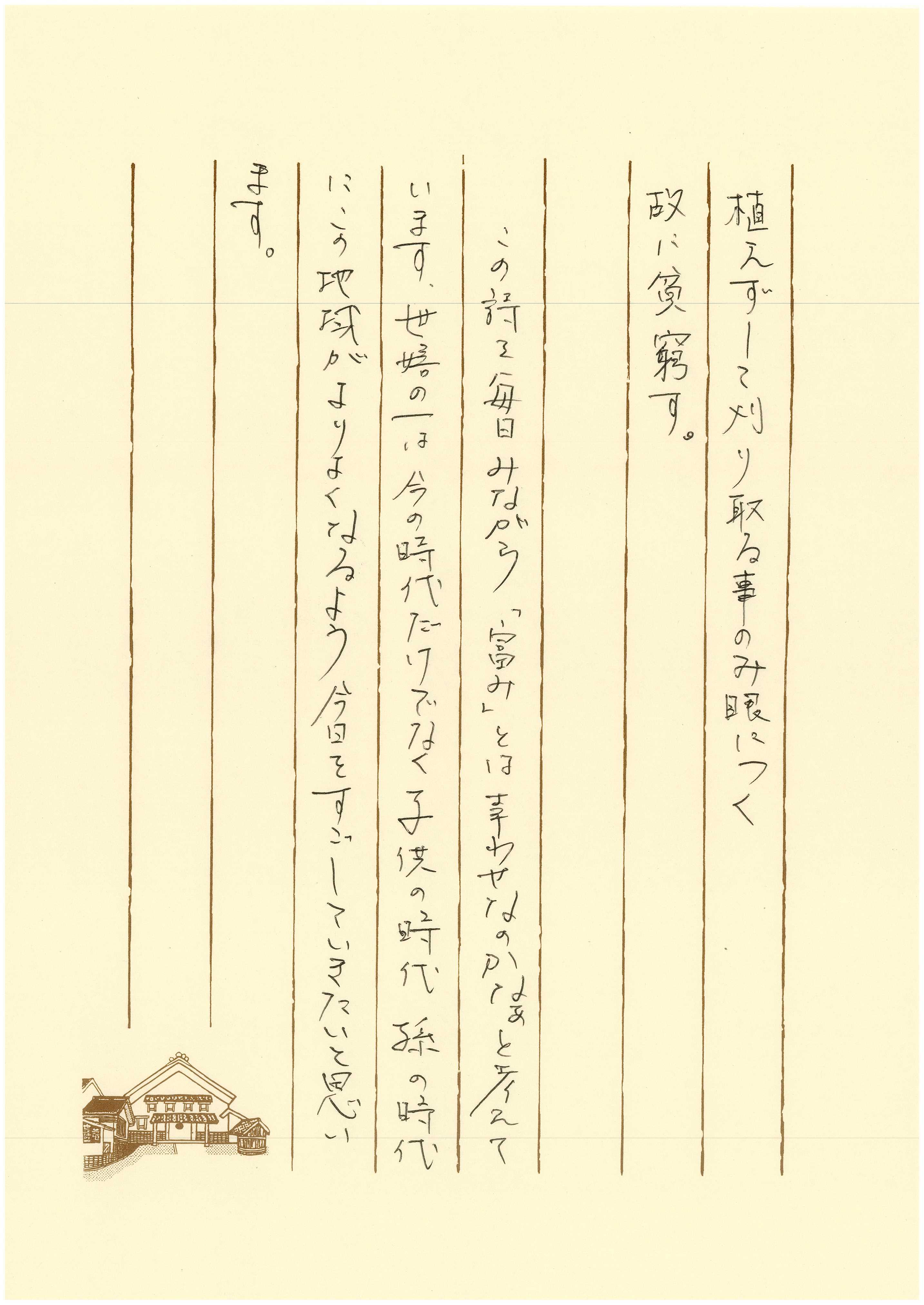 この詩をみながら、私の時代だけでなく、子供や孫の世代にこの地域がより良くなることを想って、今日を過ごしていきたいと思います。