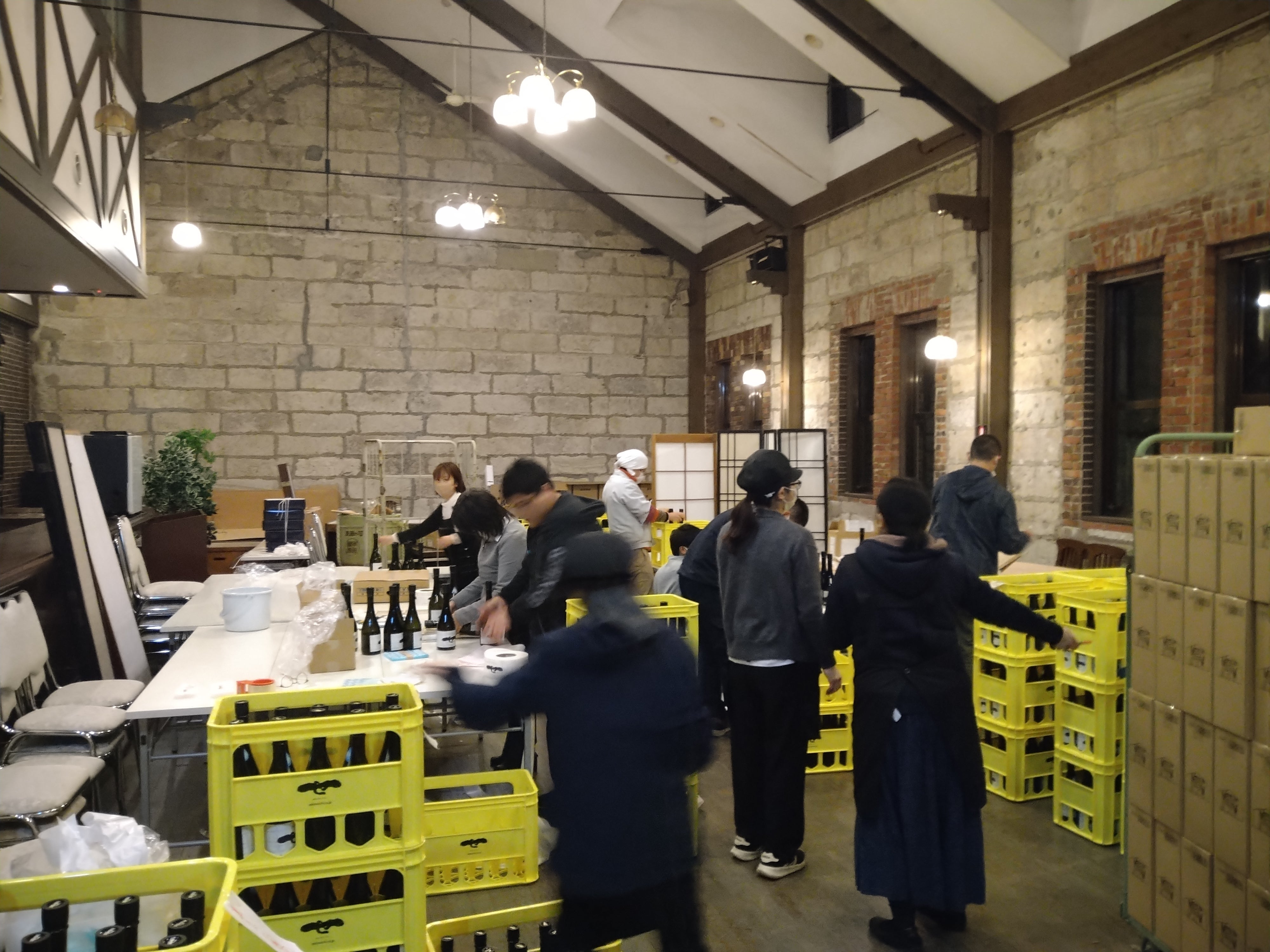 ということで、その後が大変でした。ビールスタッフ、事務所スタッフ、レストランスタッフも手伝って、みんなでラベル張り!