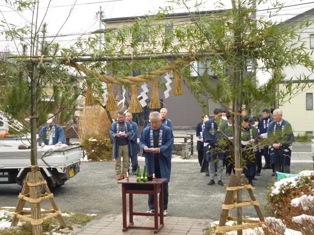 門松を立てた後に神事も行いました。このような素晴らしい地域らしさですが、すっかり行う場所が少なくなってきているそうです。