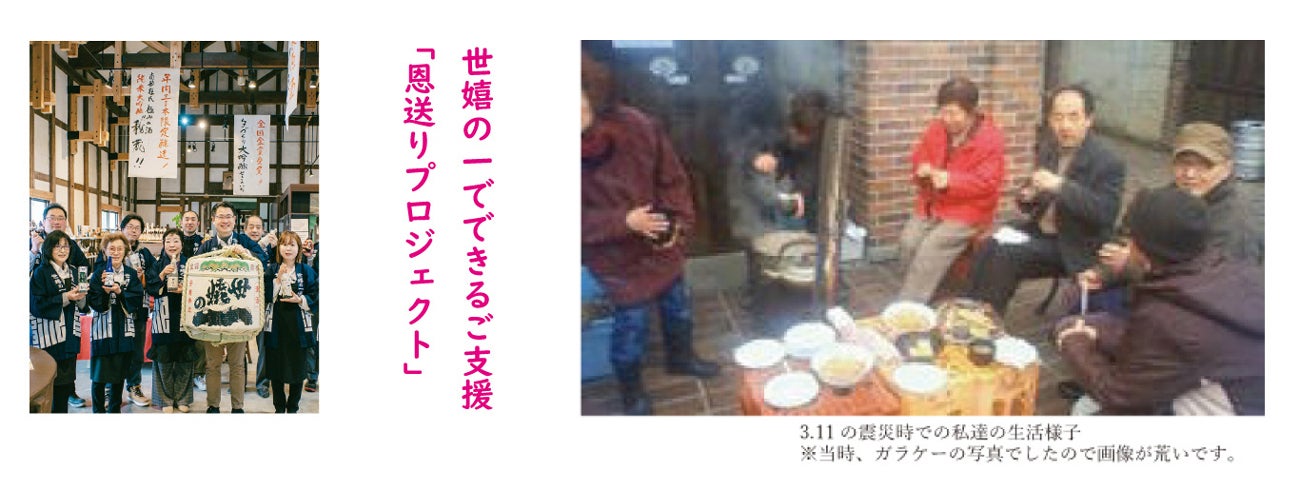 私達、世嬉の一酒造は、東日本大震災時多くの人々の応援とご支援により困難を乗り越え、今は幸せに日々を過ごすことが出来ております。