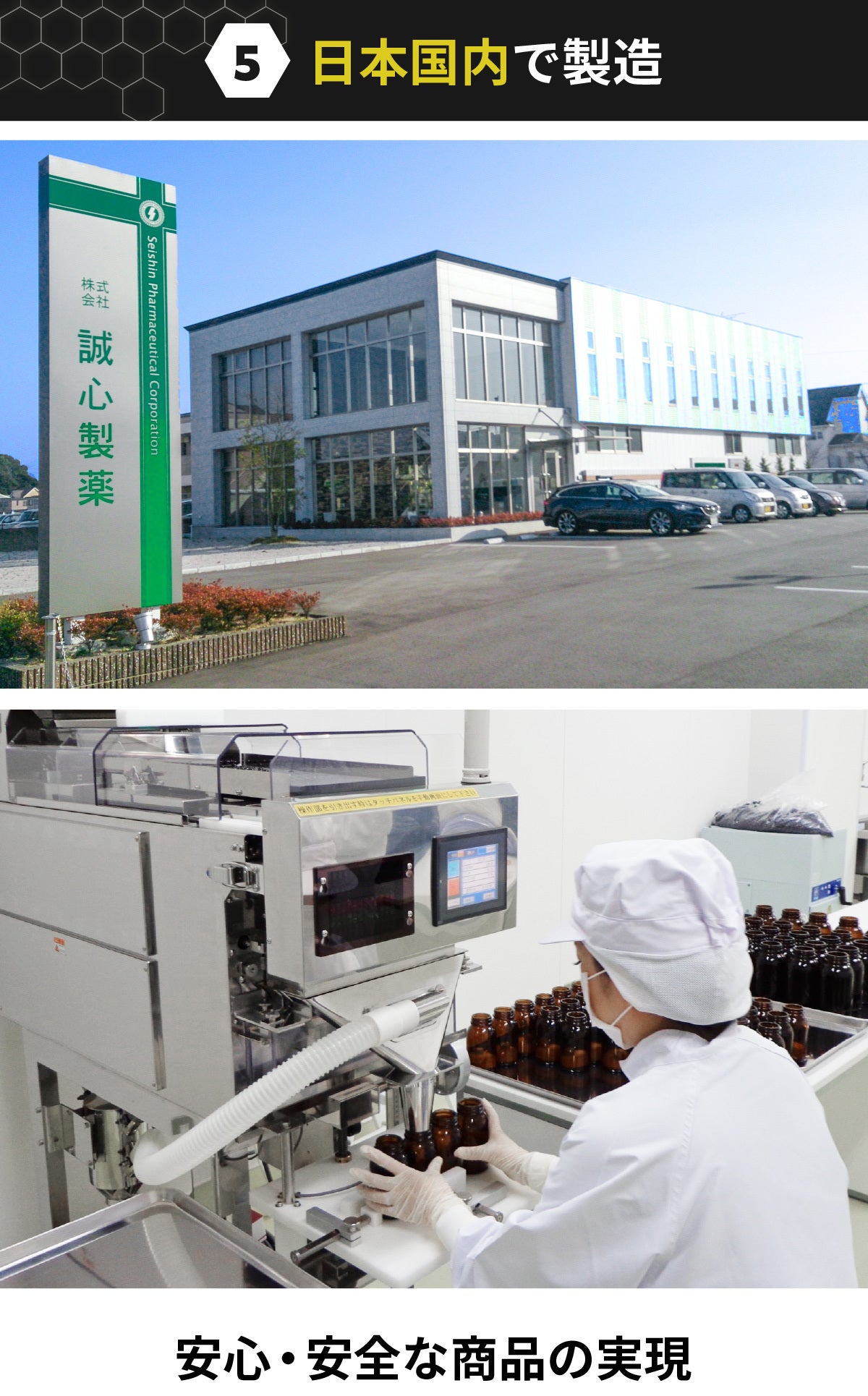 原料を輸入し、徹底した安全管理の元、日本国内で製造いたします。