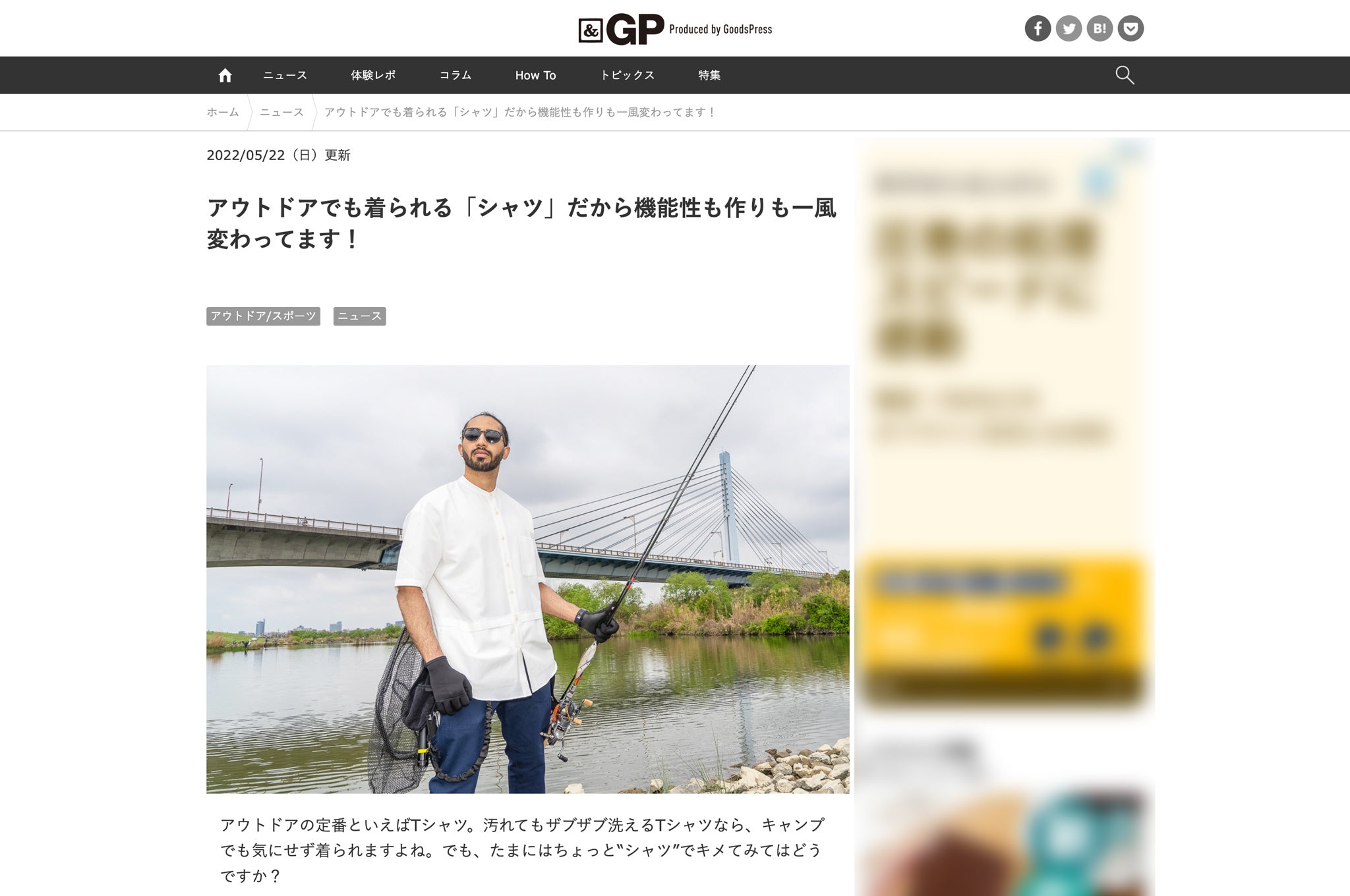 創刊30年の歴史があるモノ雑誌『GoodsPress』が運営するWeb“モノ”メディア『&GP(アンドジーピー)』に「撥水・速乾・冷感アウトドアシャツ」が掲載されました。