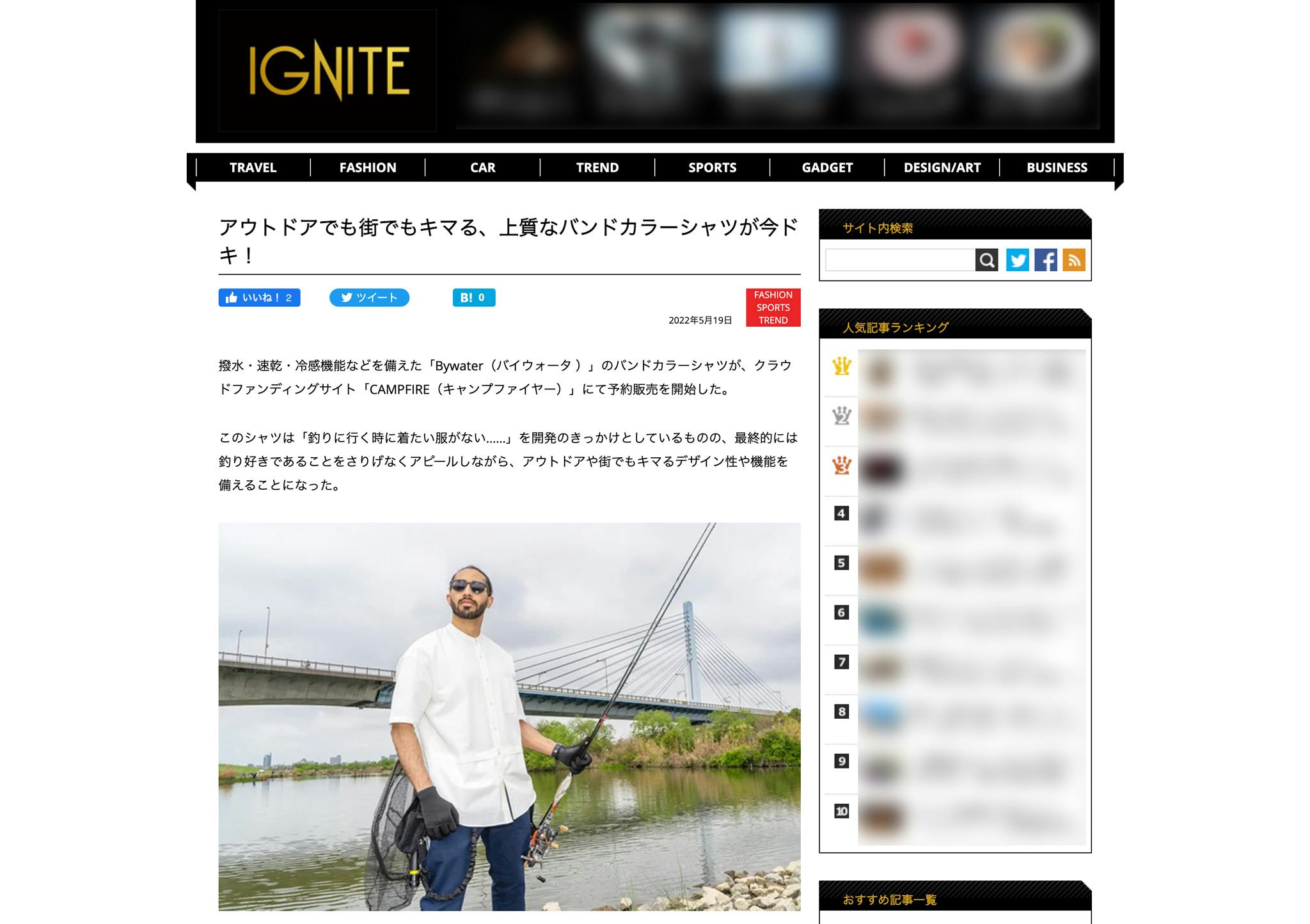 大人の上質な暮らしを提案する男性向けライフスタイルマガジン「IGNITE」に「撥水・速乾・冷感アウトドアシャツ」が掲載されました。