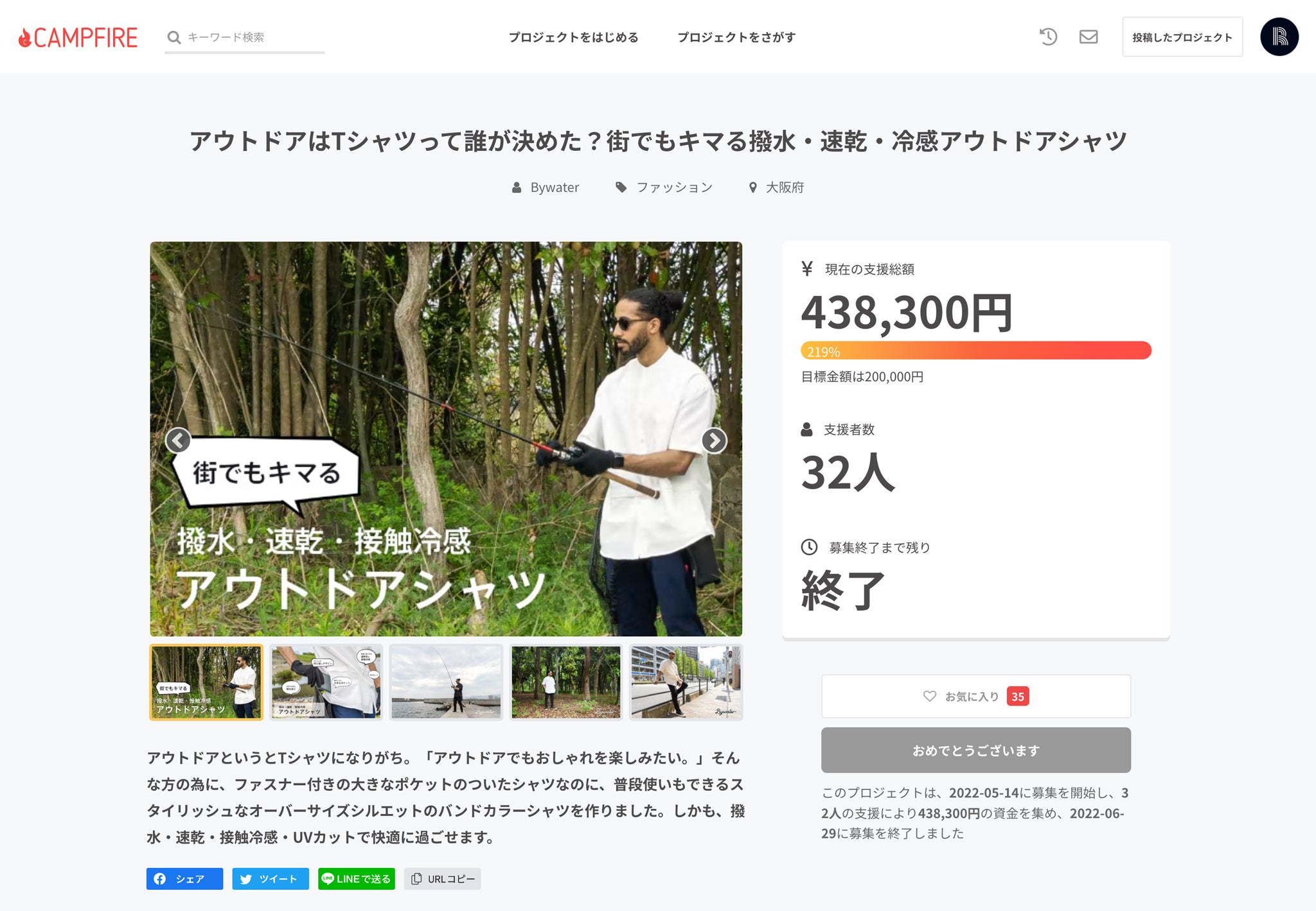 この度は、アウトドアはTシャツって誰が決めた?街でもキマる撥水・速乾・冷感アウトドアシャツ「Banded Collar Half Sleeve Shirts|INOU」にご支援いただき、誠にありがとうございます。