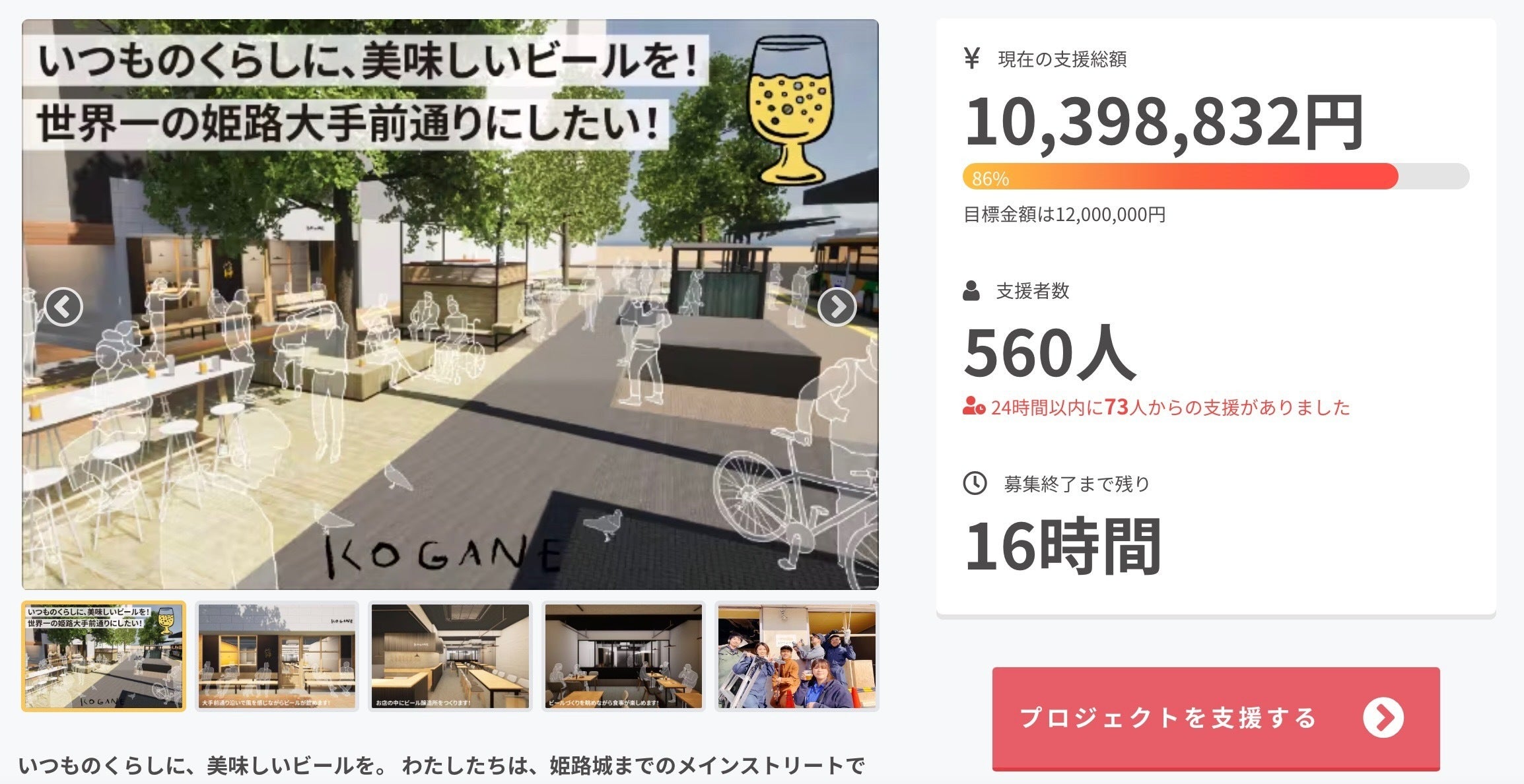 おはようございます。梶原です。既にご存知かと思いますが、104%で無事達成しました。本当に沢山のご支援ありがとうございました!!!眠れない日々からようやく開放され、今日からまた本格的に仕事に復帰します。これから現場の調整を行い、DIYも含めた工事、タンクの設置、醸造開始へと進んでいきます。ここでも随時報告を上げていきますのでお楽しみに!