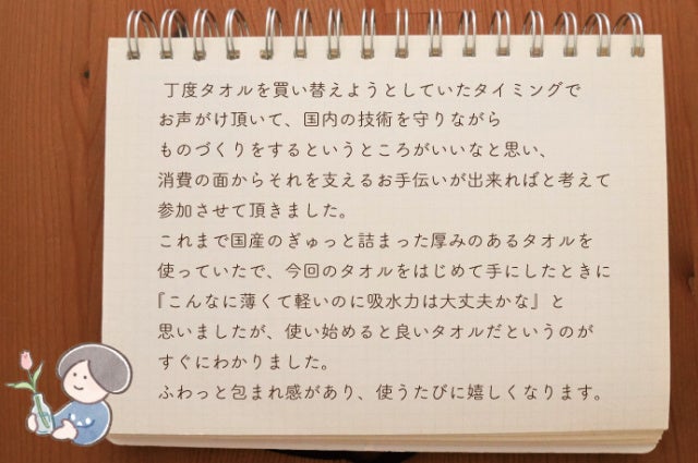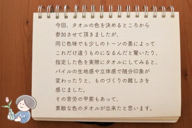 商品の企画段階からご参加いただき、今回のタオルの色を決めていただきました。