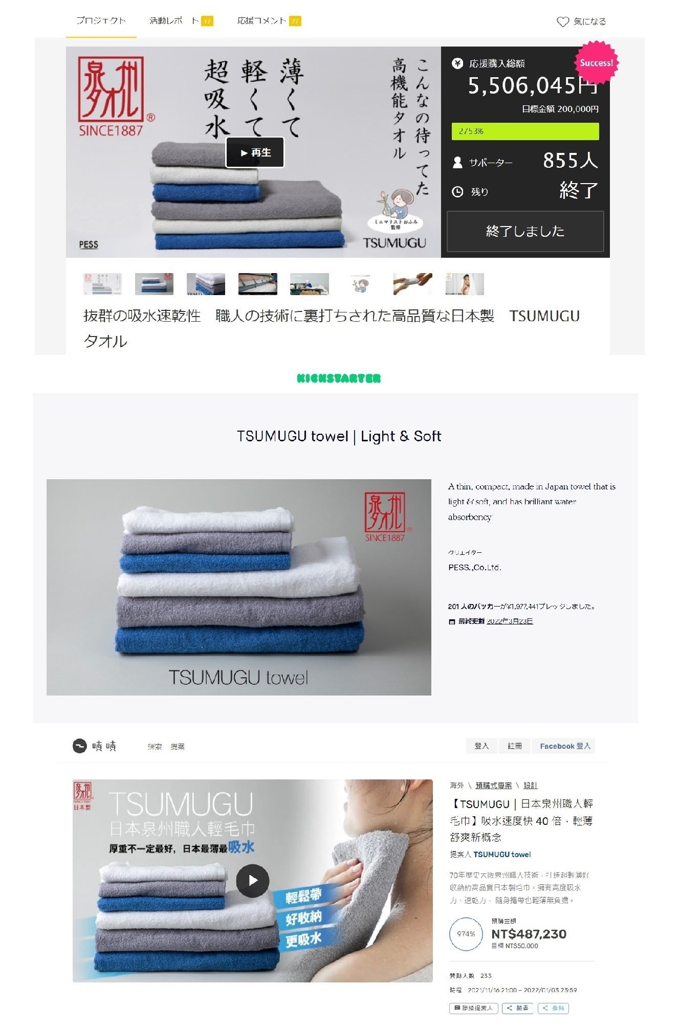 TSUMUGUタオルは2021年のローンチから日本、アメリカ、台湾のクラウドファンディングを実施。