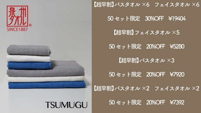 2024/09/02 12:00みなさまこんにちは、TSUMUGUタオルプロジェクトチームです。9月4日 11:00より、TSUMUGUタオルはmachi-yaで新たなプロジェクトを公開いたします!今回のプロジェクトでは新たにパープルとグリーンの新色2色を追加しました。今回もお得な割引価格をご用意しておりますので、この機会に是非ご購入ください!下記URLのお気に入りボタンを押していただくと、プロジェクトの公開をメールで通知させていただきますので、お気に入り登録後プロジェクトの公開をお待ちください。https://camp-fire.jp/projects/view/770819TSUMUGUタオルで皆様の生活を快適にするお手伝いが出来れば嬉しく思います。よろしくお願い致しますm(_ _)m もっと見る【TSUMUGUタオル】新プロジェクト公開しました。