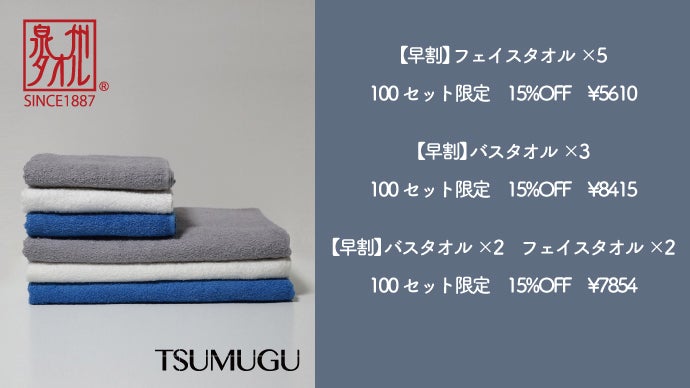 綿から糸を作りだす言葉の「紡ぐ」の意味から、技術を盛り込み大切に作られている今回のタオルをTSUMUGUタオルと命名しました。