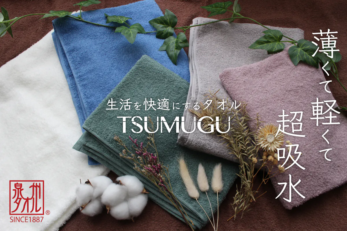 吸水性が高く、薄くて乾きやすいTSUMUGUタオルは、日常使いに適しています。