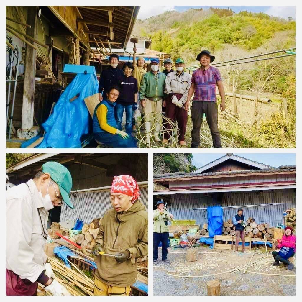 2023/01/27 22:45旧暦新年の22日、KAMIASOBIの神庭(舞台)となる竹の切り出しを皆で行いました。集まった有志は子供2人含めて総勢16名、九州各地から駆け付けて来て下さいました。その日の朝に近くの天神様で神遊(kamiyuu)が自ら汲んできた新年の若水を皆に振る舞い、切り出し作業の安全を祈願致しました。気も引き締まったところで、竹の切り出し作業開始簡単な段取りを済まし、それぞれが出来る持ち場へと自然と分かれ、竹を刈り枝を落として、上から下へと運ぶの繰り返しそもそもなぜ大変な作業にも関わらず竹を使うのかと言うと、竹は穢れや不浄を防ぐ為に斎み(避ける)清めるという意味があります。神楽でも神を迎え入れる時に、神庭が清浄である事として、舞台の四方に青竹を立て、しめ縄を張り四手を垂らします足元が悪い中にありながらも、皆黙々と作業に打ち込み、いつの間にか子供もお手伝い♪朝は青空が見えていたはずが、雨がポツポツと降り出し、ちょうどそのタイミングで目標の50本切り出し完了!良いチームワークが取れてあっという間の作業時間でした。クラウドファンディング終了(1/31)まであと4日!そしてKAMIASOBI本番まで、あと51日、残りの時間をこうやって一つ一つ味わいながら、心を整えて本番を迎えたいと思います。 もっと見る