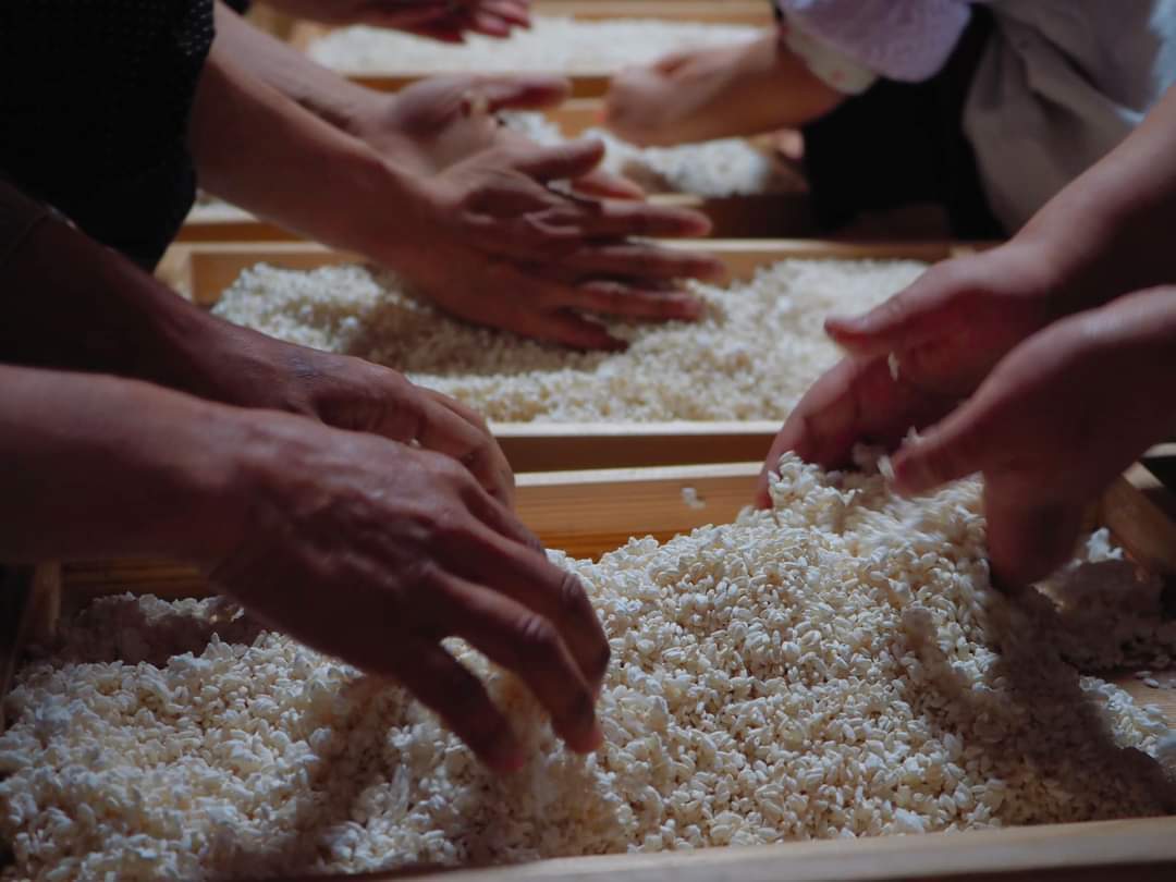 2023/01/24 22:14大寒の前日にあたる19日に、返礼品となるお味噌を舞人の皆で仕込ませて頂きました。大豆は高千穂で昔から育てられてきた貴重な在来品種の麻尻大豆※栽培期間中、農薬は使用していません。そして糀は舞人の一人であり、発酵クリエイターのIちゃんが育まれたものを霧島から。皆で目を閉じ、心を整え、Iちゃんの言葉に静かに耳を傾ける。”大豆の一粒ひとつぶが自分自身糀の一粒ひとつぶが自分自身です”そして優しく触れていく。大きな立派な丸いざるに、まるで砂曼荼羅のように糀・塩・大豆を並べ、芳しい香りの中で、女性・男性・若者・子ども、皆の手で混ざり融合し、いっぱい笑って、時に神聖な場へと変わる。これから祭りの舞台となって行く田んぼを見ながら、春分の日に思いを馳せる。味噌作りのように、「見えるものと見えないものとの融け合う時間」が私たちの暮らしの中にたくさんあり、それらが醸して「祭り」となるその日が来るのが待ち遠しい(本文 Y) もっと見る