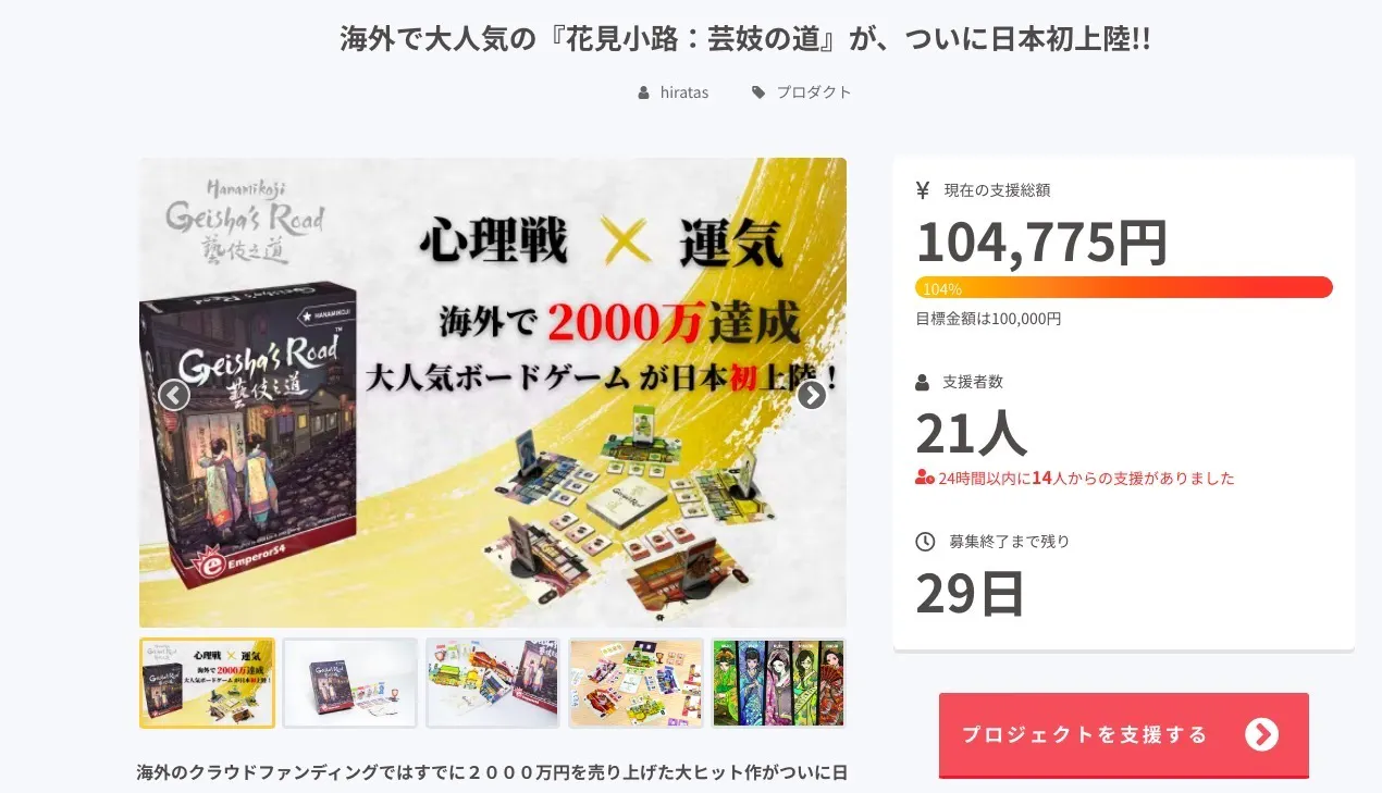 『花見小路:芸妓の道』ですが、1日で目標金額の100%を達成いたしました!!!