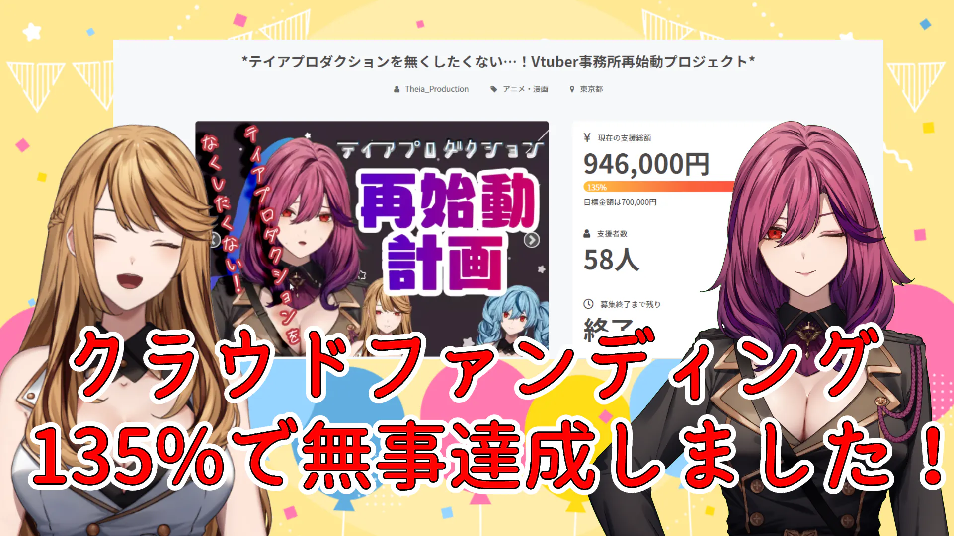 本日以降テイアプロダクションクラウドファンディング担当から