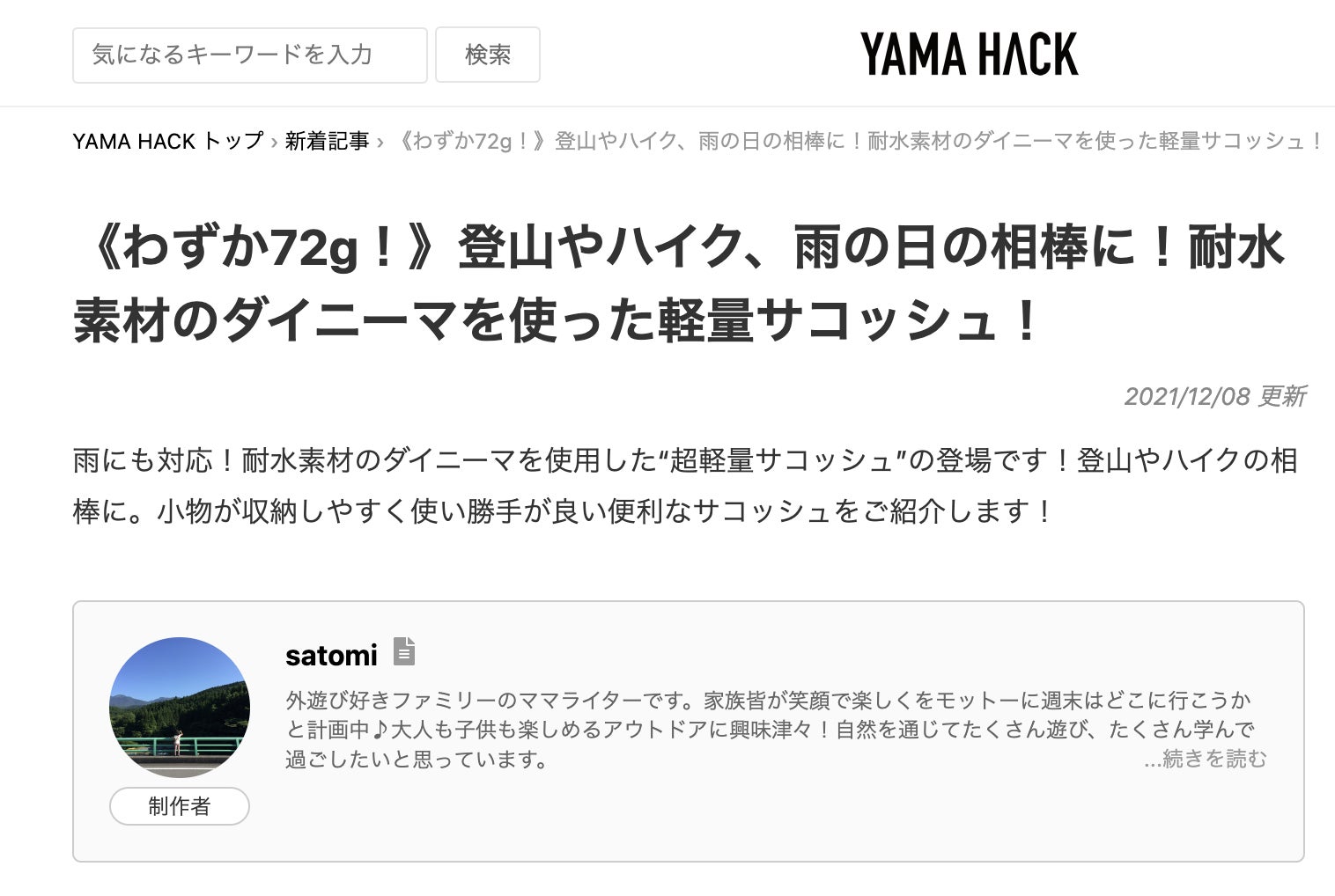 ● 国内最大級の登山メディア「YAMA HACK」で【 UL Rainproof Sacoche 】が紹介されました。