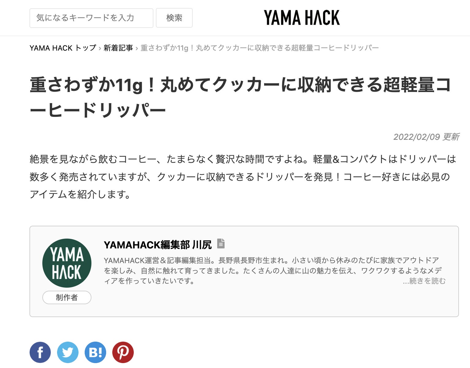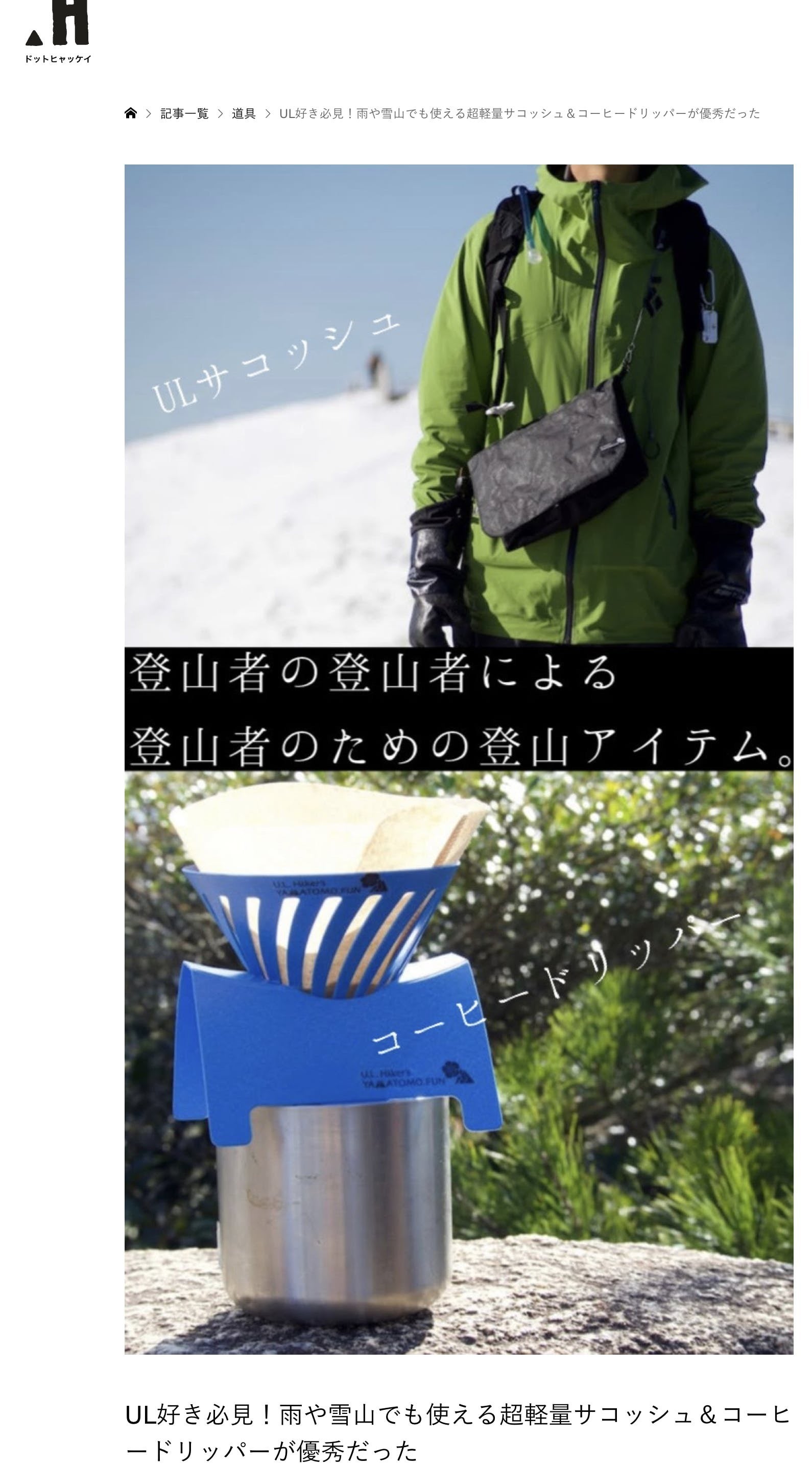 ● 国内最大級の登山メディア「YAMA HACK」で【 U.L. FUN Drip 】が紹介されました。