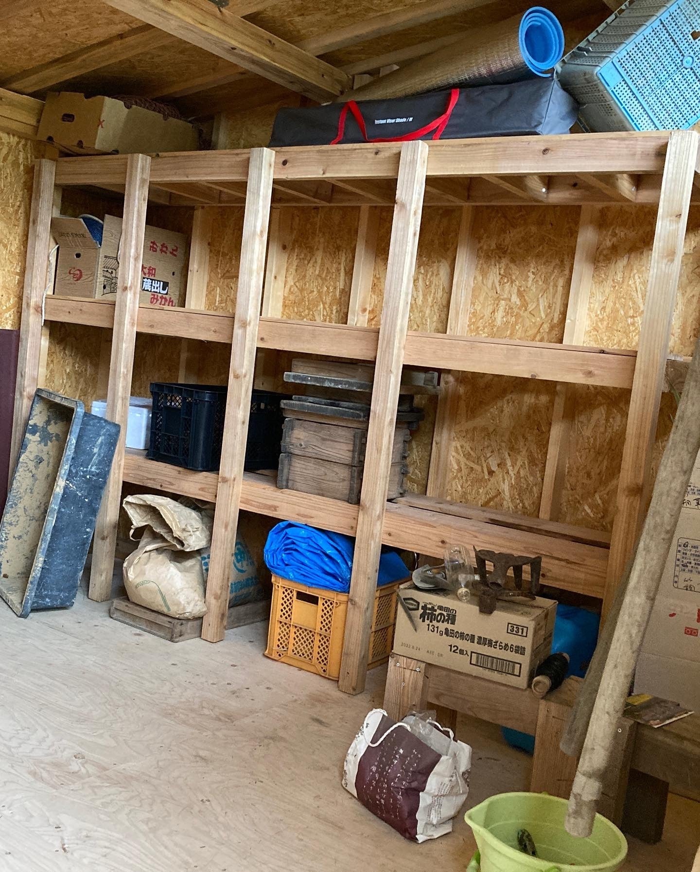 小屋の棚ができたので、カーポートの荷物を小屋に移しました。これで車が入れられる!
