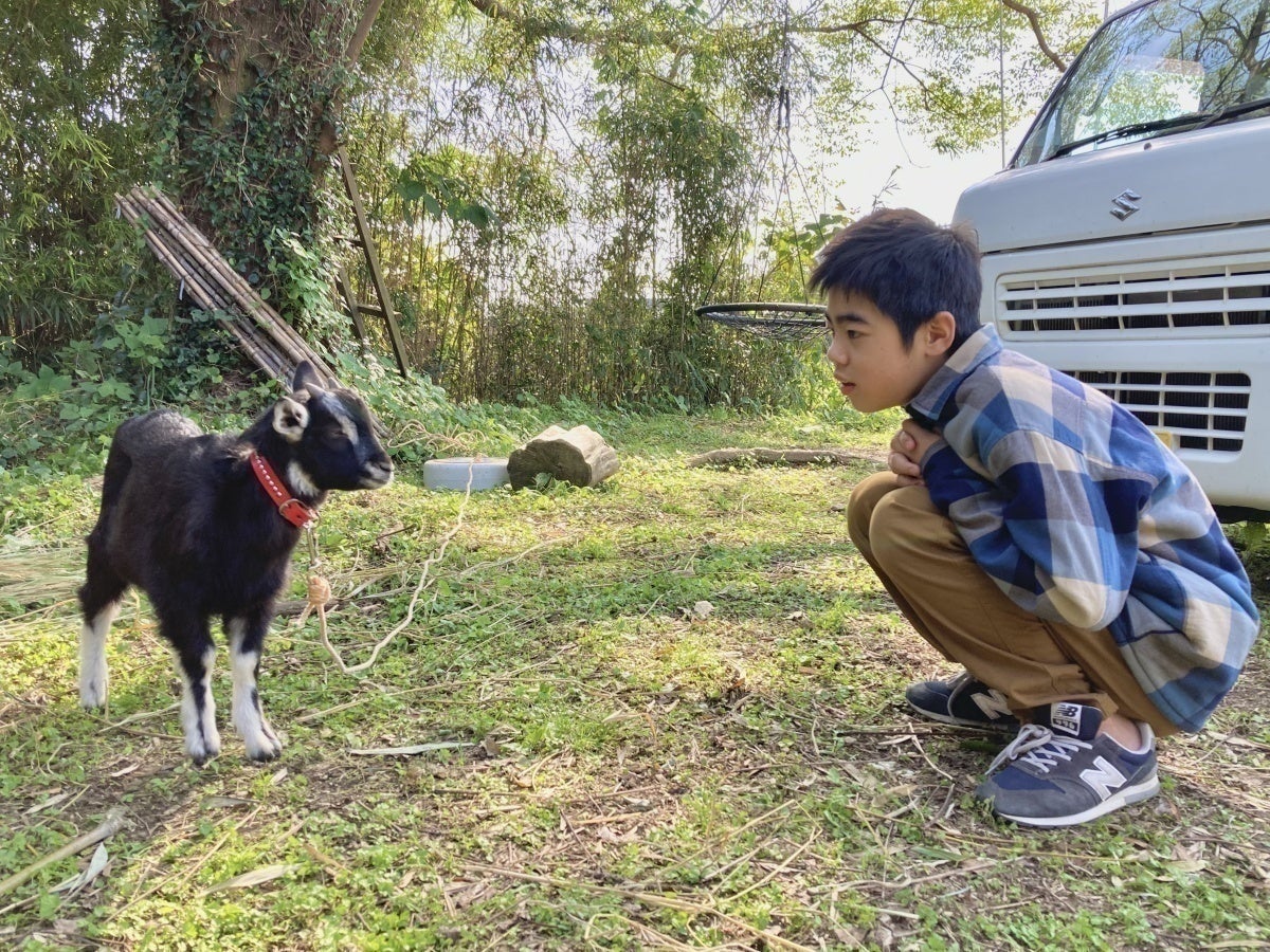 昨秋、草刈り?要員として、黒ヤギの「丹波黒豆」が仲間入りしました。