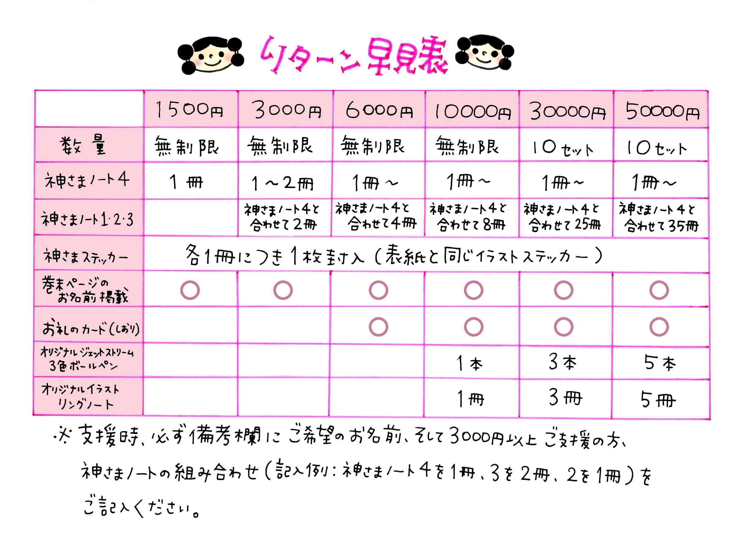 通常、1冊1650円(送料別途)にて販売している「神さまノート」、先行してお得にお求めいただく機会となります。