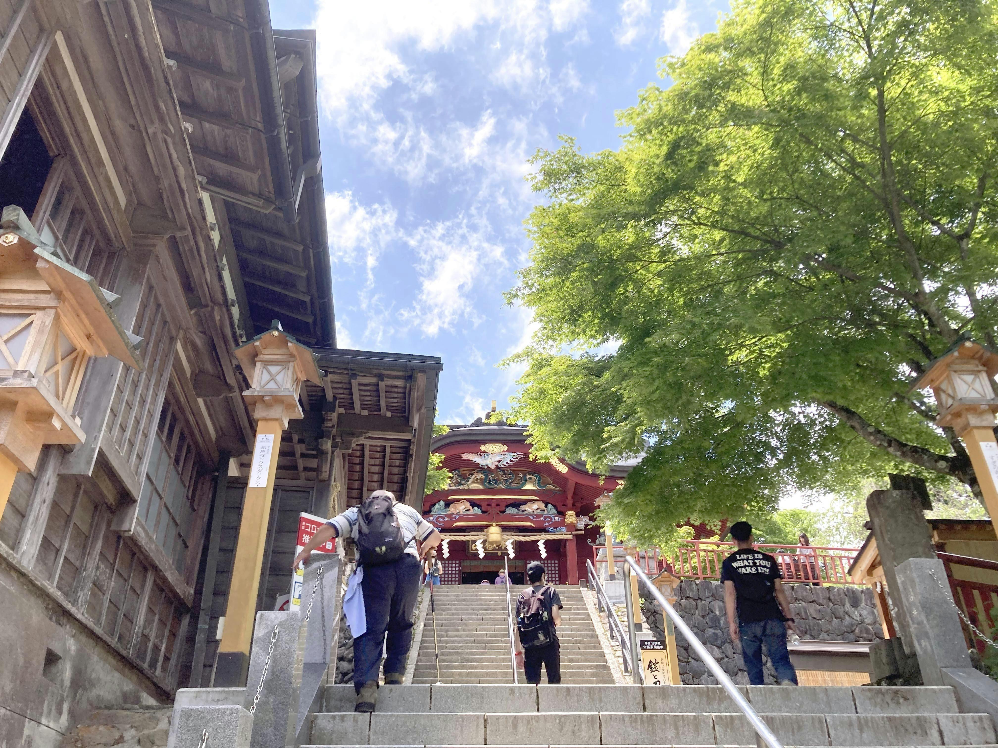 次女も一緒に行ったのですが、彼女の視点はいつも面白くて、「鬼がいたよ」とか(階段のところにいたようです。帰り道を変えたことで私と主人は見つけることができませんでした)、彼女が「リフトに乗りたい!」と主張してくれたおかげで、山頂に鎮座する摂社、産安社へお参りすることができました。